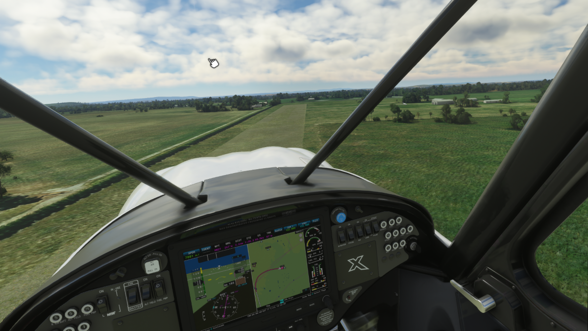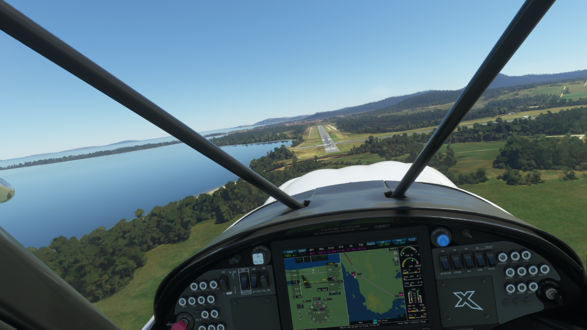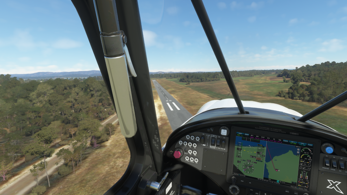 Desde allí nos dirigimos al destino para realizar la aproximación mediante viento en cola del circuito a izquierda para aterrizar en la pista 18 del aeropuerto Grafton (YGFN) en Australia.
