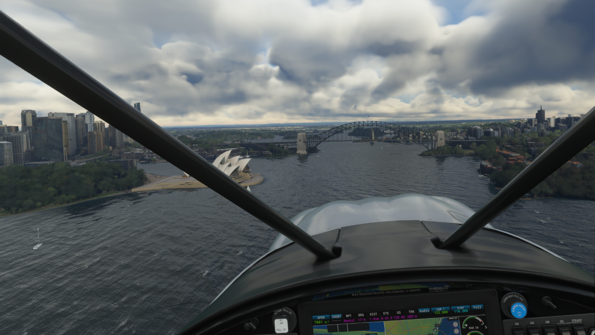Luego de recorrer la zona de la ópera de Sídney y el puente, comenzamos la ruta hacia el norte, realizando algunas tomas y despegues donde fue posible, ya que el clima estaba muy degradado (en algunos aeródromos ni alcanzamos a ver la pista).