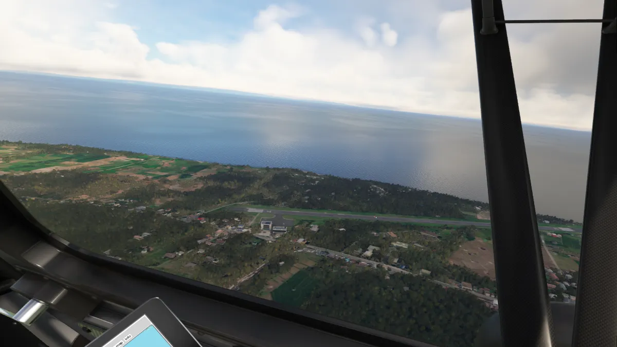 Desde allí nos dirigimos al destino para realizar la aproximación en base y final para aterrizar en la pista 34 del aeropuerto Marinduque (RPUW) en Filipinas.