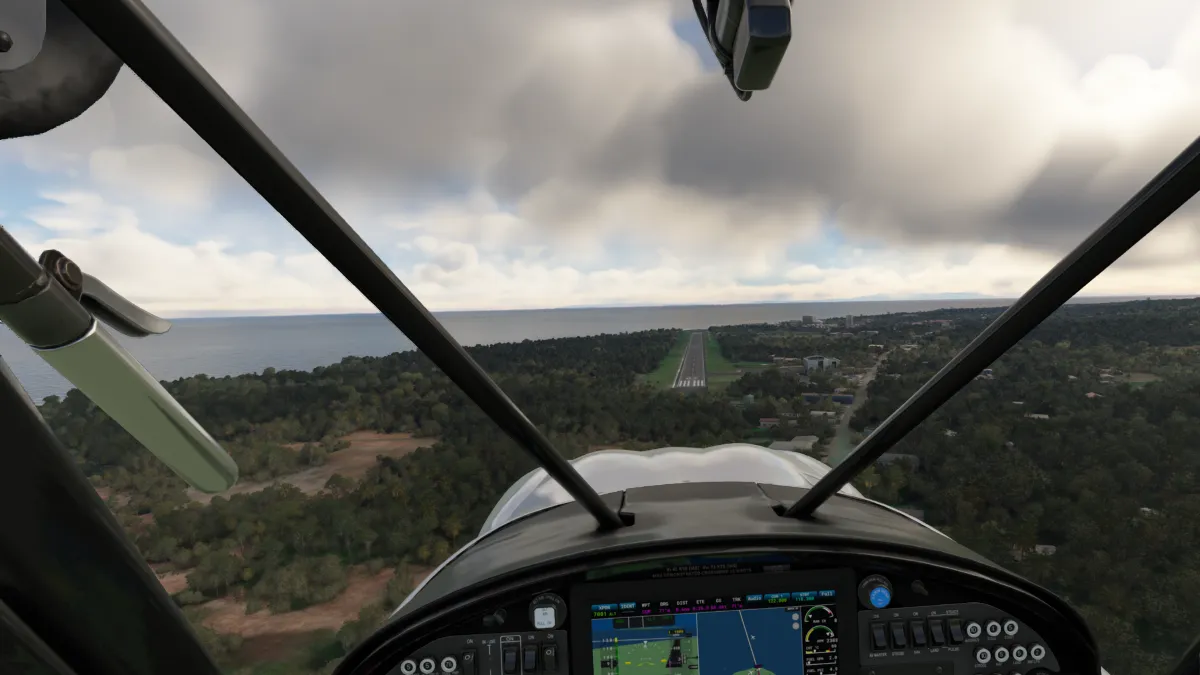 Desde allí nos dirigimos al destino para realizar la aproximación en final para aterrizar en la pista 32 del aeropuerto Hengchun (RCKW) en Taiwan.