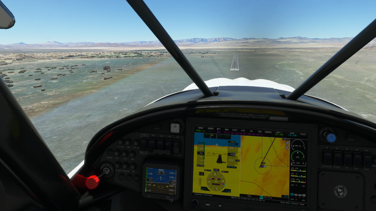 Recién a mitad de camino encontramos un aeropuerto donde hacer toma y despegue: Zhob (OPZB) adonde ingresamos a circuito a izquierda para la pista 28.