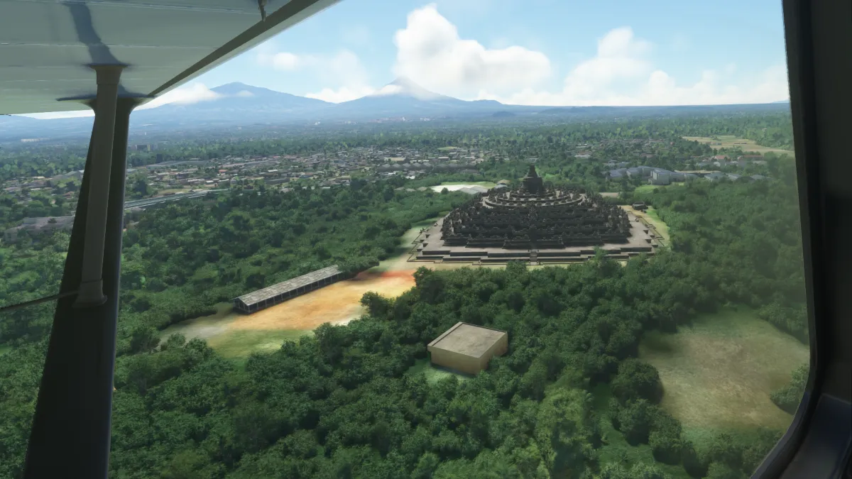 Luego en rumbo a nuestra primera toma y despegue pasamos por el templo Borobudur para luego ingresar a la toma a final para la pista 09 del aeropuerto Adisutjipto (WAHH).
