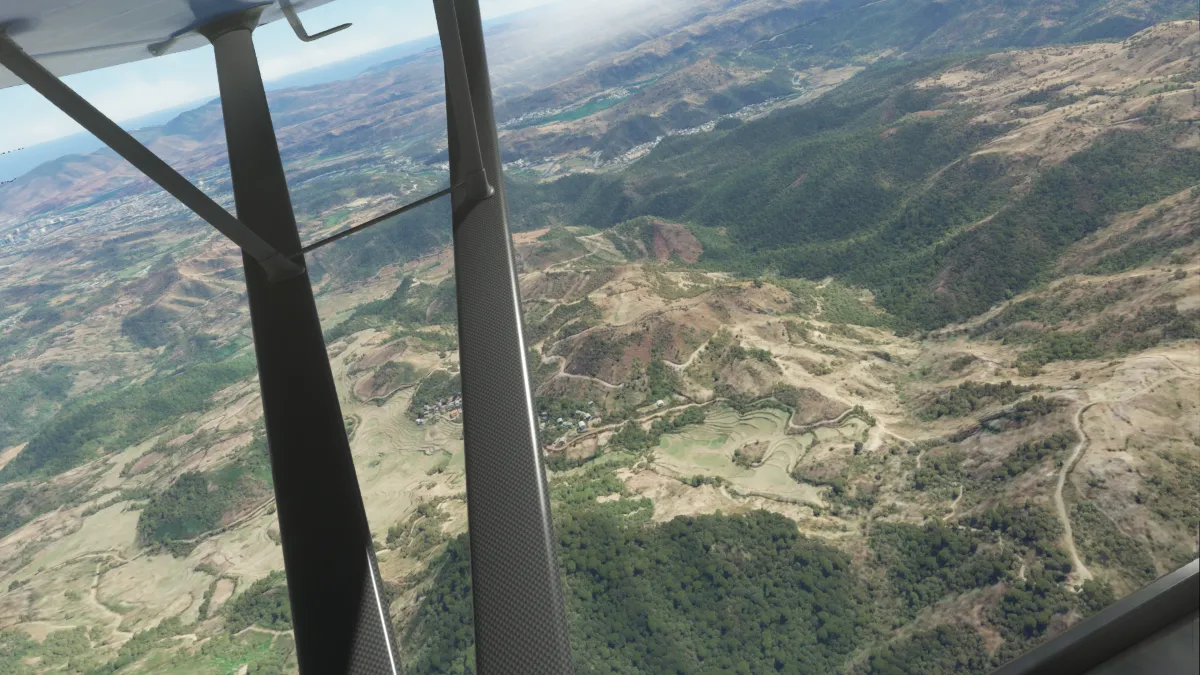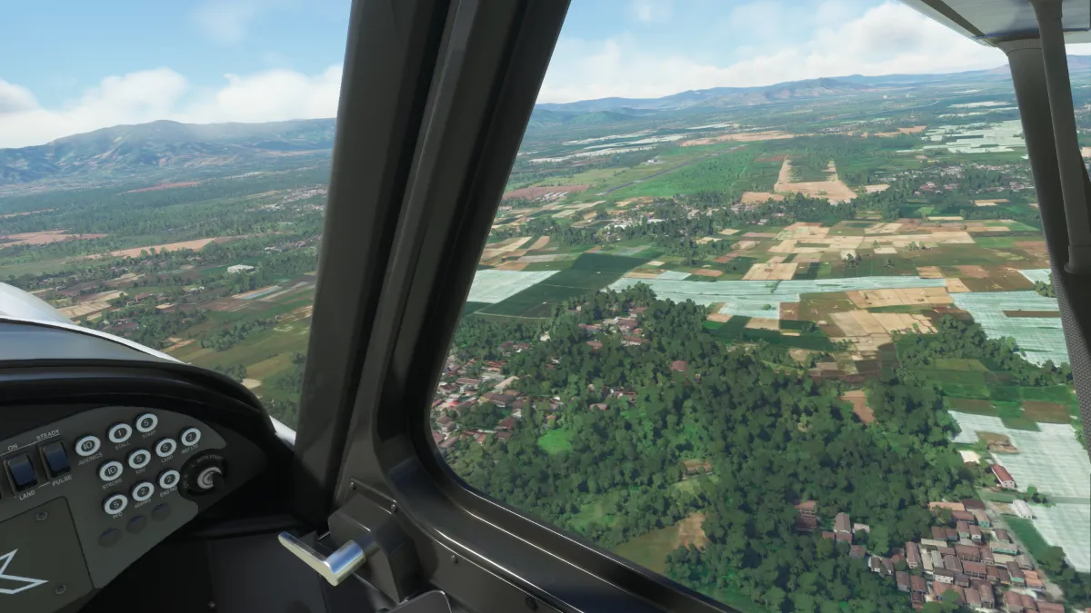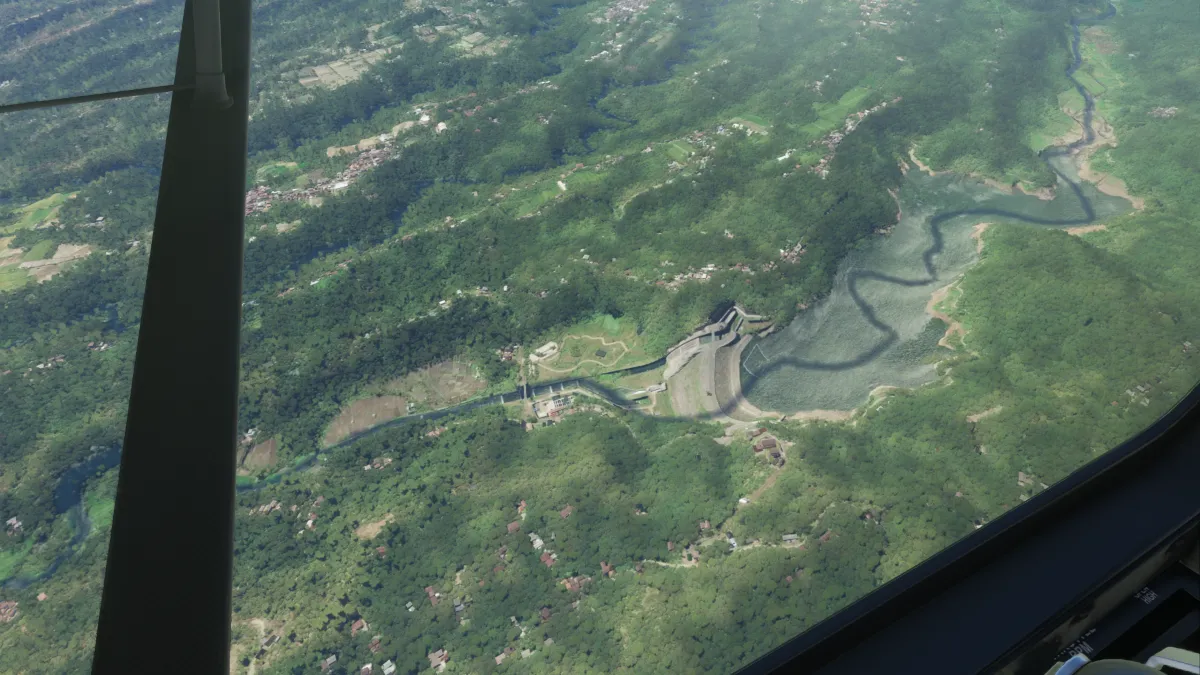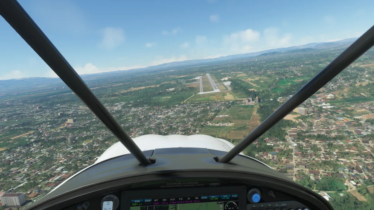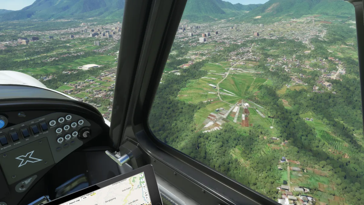 Tras atravesar la cordillera a la derecha de los montes Gunung Lawo realiamos una nueva toma y despegue ingresando a base y final para la pista 17L en Iswahyudi (WARI).
