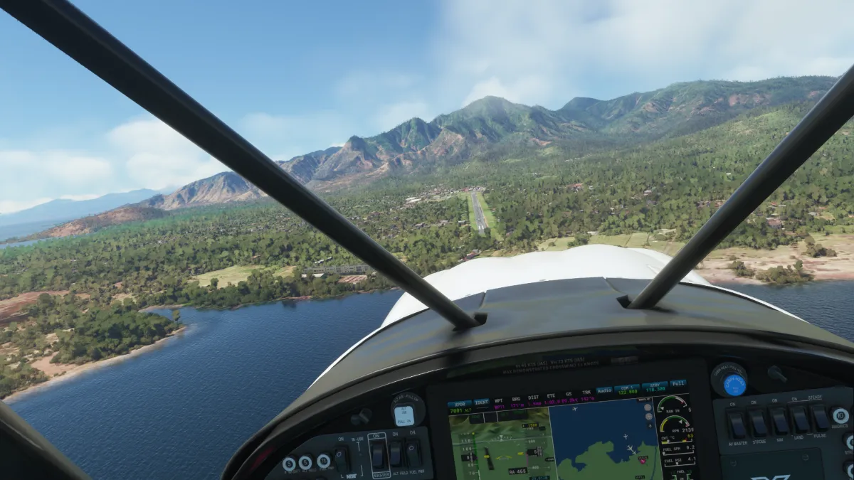 Por último, nos dirigimos al destino para ingresar a final para aterrizar en la pista 10 en el aeródromo Gewayantana (WATL) en Indonesia.