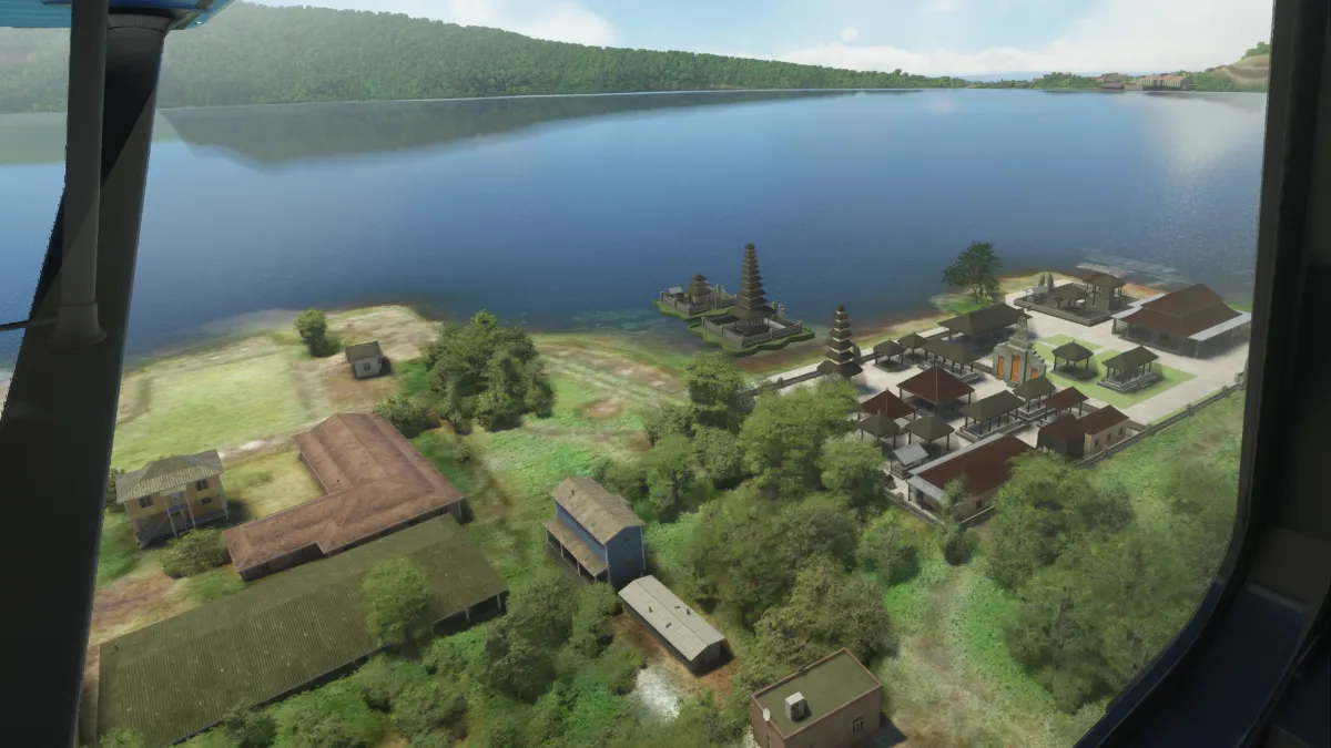 Desde allí continuamos por la costa norte dirigiéndonos a a la presa de Tukad Saba, y luego a los lagos Tamblingan, Buyan y Beratan, donde sobrevolamos sobre la costa de este último lago, al monasterio de Pura Ulun y la estatua Patung Kumbakarna Laga.