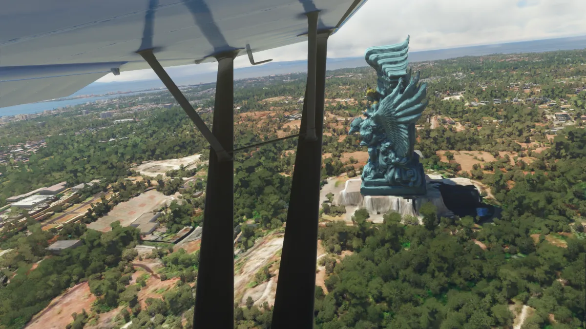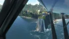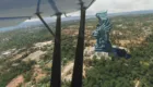 Ya en las inmediaciones de Bali, sobrevolamos el monasterio de Tanha Lot, la playa de Kuta, y el monumento Bajra Sandhi. Ya en el parque Taman Budaya la impresionante escultura de Garuda Wisnu Kencana y luego sobre la costa el monasterio de Pura Luthur Ulwatu.