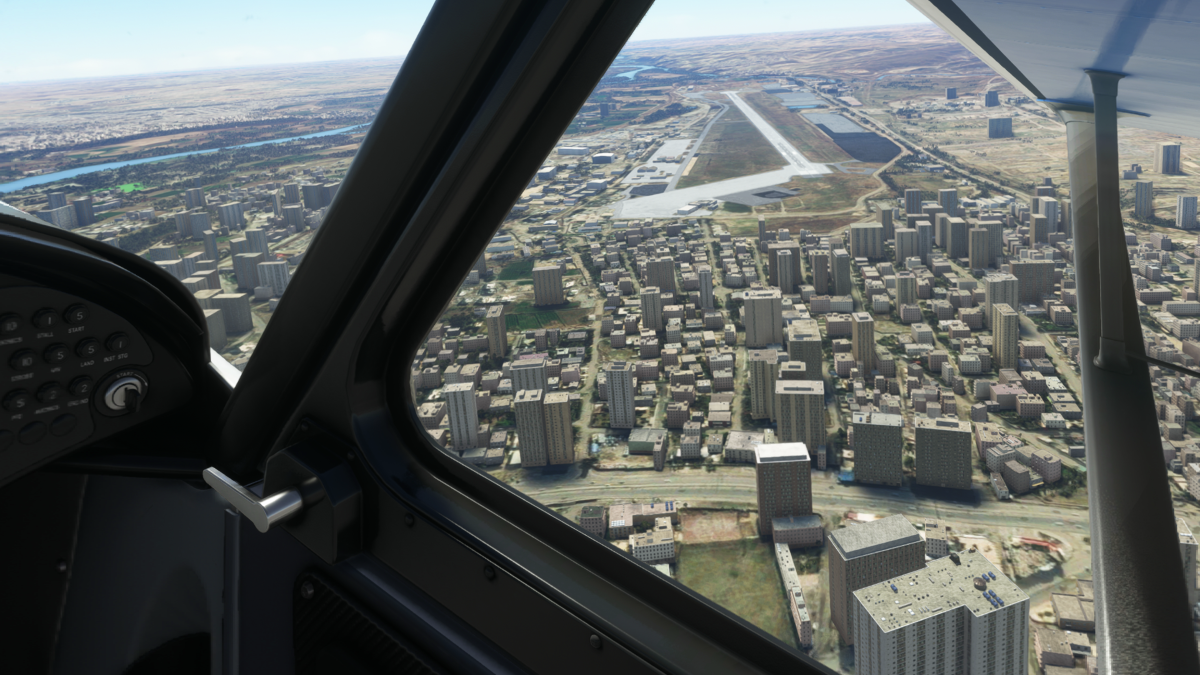 Luego realizamos la segunda toma y despegue en el aeropuerto de Mosul Intl (ORBM) tras sobrevolar la ciudad de Mosul para realizar viento en cola circuito a izquierda de la pista 33.