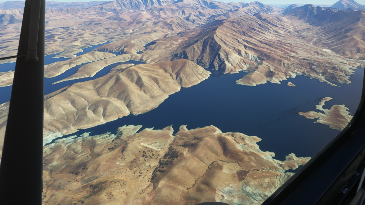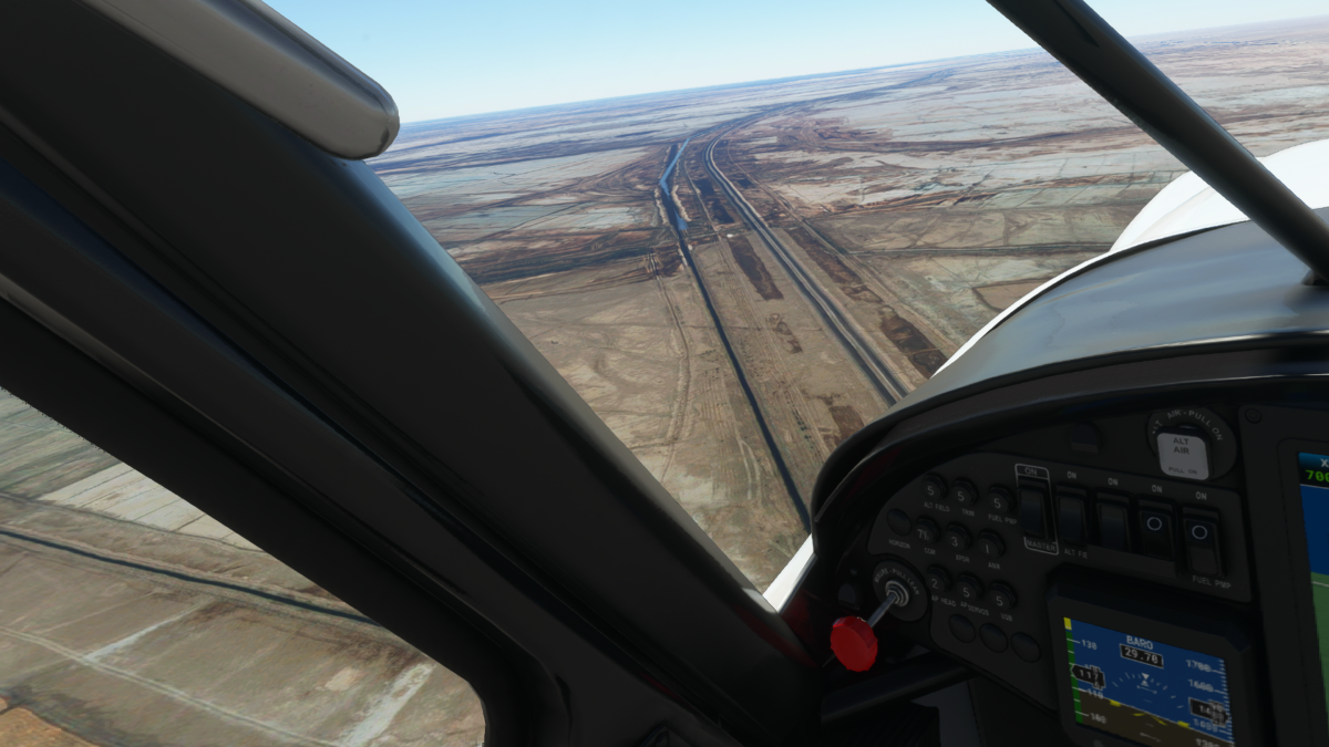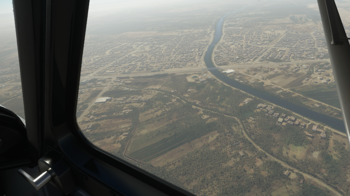 La primera hora de vuelo fue bastante aburrida, ya que era puro desierto iraquí, pero más adelante encontramos varios aeropuertos (principalmente militares) donde hacer tomas y despegues: