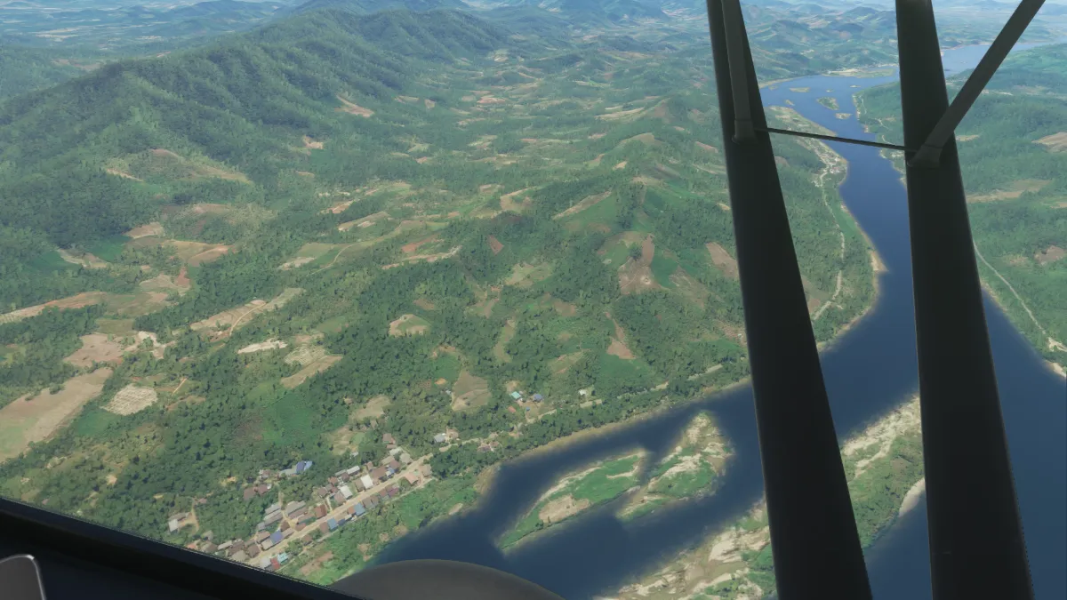 Las dos últimas tomas y despegues, una muy cerca de la otra, fueron en el aeropuerto Nakhon Phanom (VTUW) donde tomamos por pista 15, y tras cruzar el río Mekhong en el aeródromo de Thakhek Airport (VLTK) ingresando a final de la pista 10.