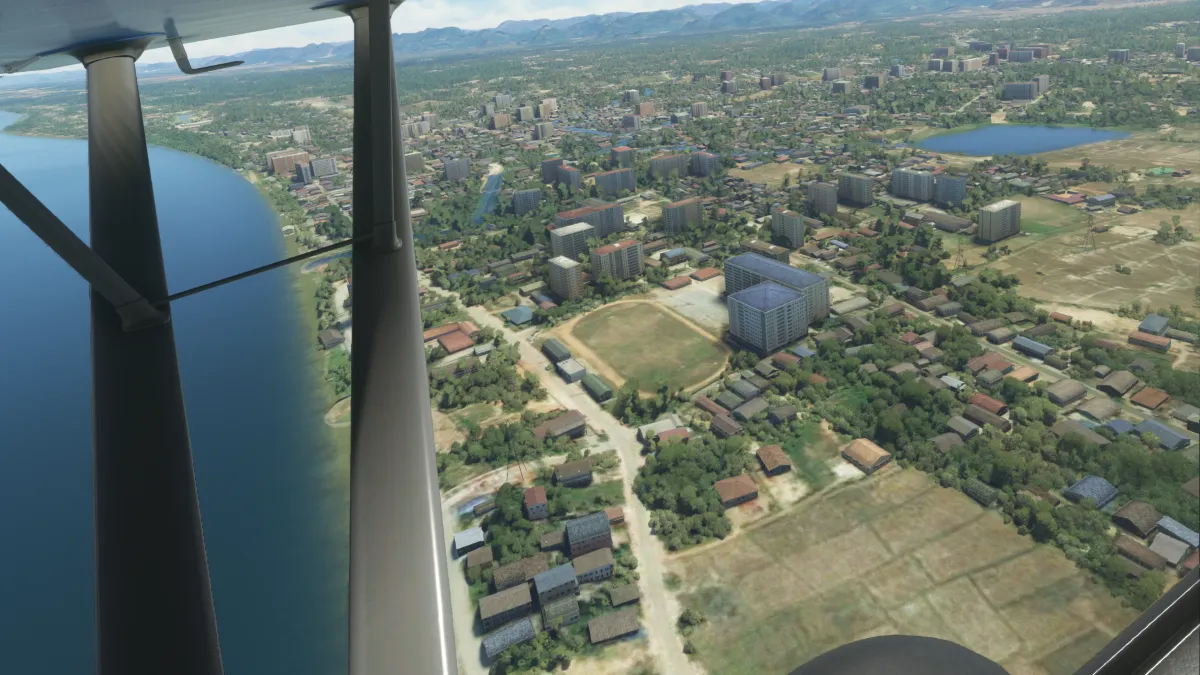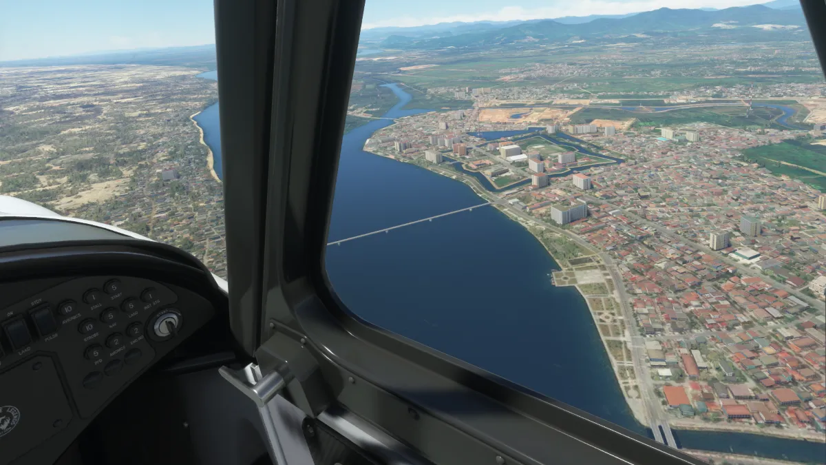 Tras cruzar la frontera entre Vietnam y Camboya, nos desviamos un poco de la ruta hacia la ciudad de Kompong para realizar una segunda toma y despegue en el aeropuerto de Kompong Cham Airport (VDKC) a donde nos aproximamos vía base y final a izquierda para la pista 23.