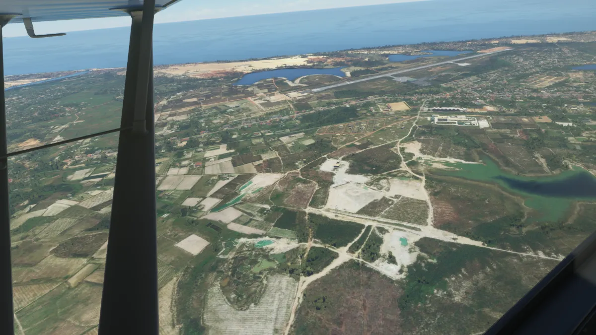 En esta primera parte del vuelo, siguiendo la línea de costa, encontramos 3 aeropuertos donde realizar tomas y despegues; el primero el aeropuerto Phubai (VVPB), a donde ingresamos por base y final a izquierda para la pista 09.