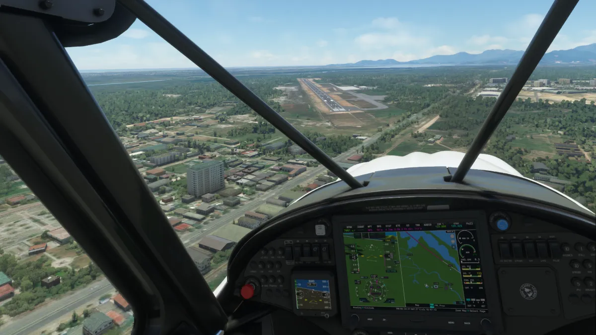 Desde allí ya nos dirigimos al destino, volando al interior de Vietnam y comenzando a ascender para sortear las montañas. Llegamos a destino ingresando a base y final a derecha de la pista 27 del aeropuerto Pleiku (VVPK) en Vietnam.