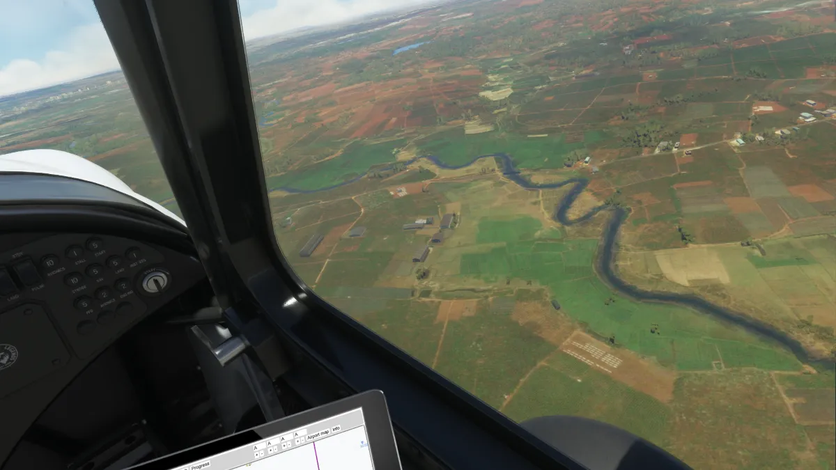 El 08/07/23 realizamos la etapa 128 del tour mundial con reglas de vuelo visual. Volamos desde el aeropuerto Wattay Internacional (VLVT) en Laos, despegando desde pista 31 e inrgesando a viento en cola del circuito a derecha para proseguir nuestra ruta hacia el este.