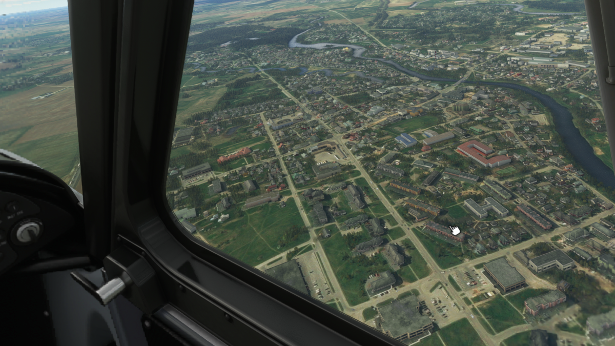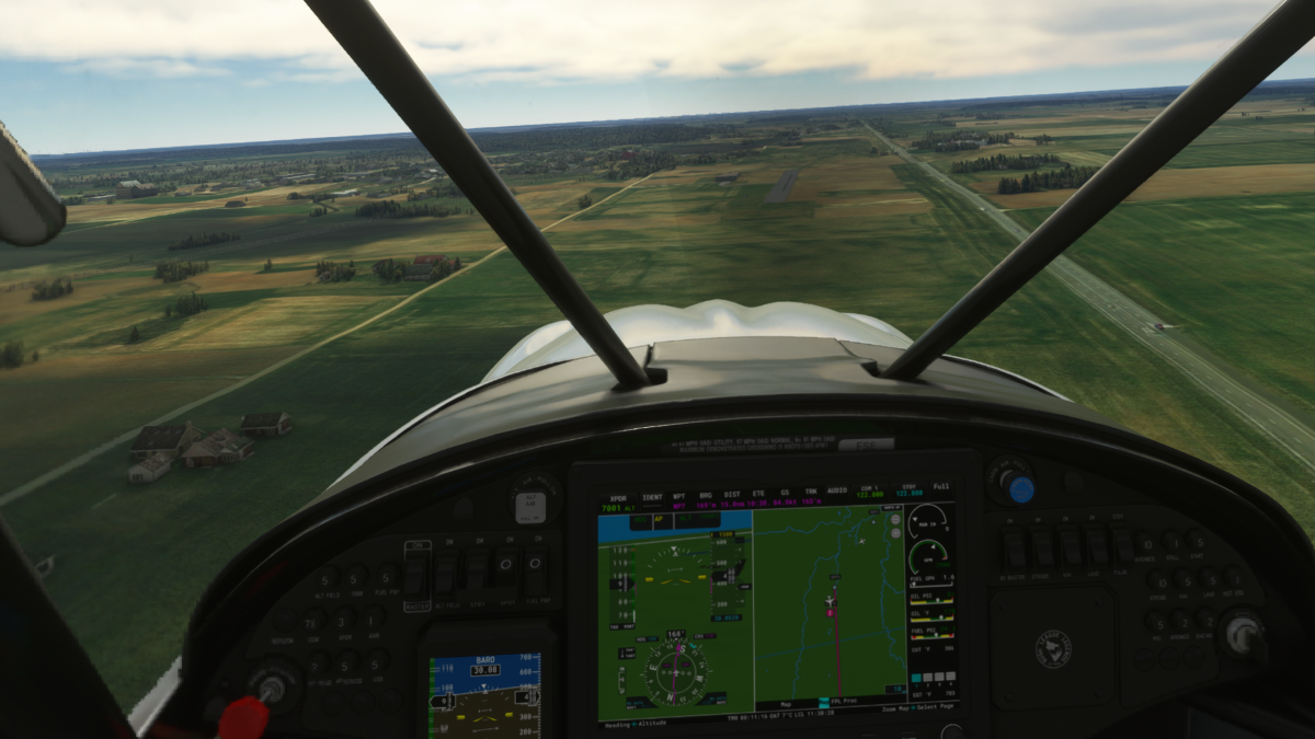 Un poco mas adelante, y tras buscarlo mediante varios 360, por fin encontramos al aeródromo de Karksi (EEKI) donde realizamos una nueva toma y despegue por pista 16.
