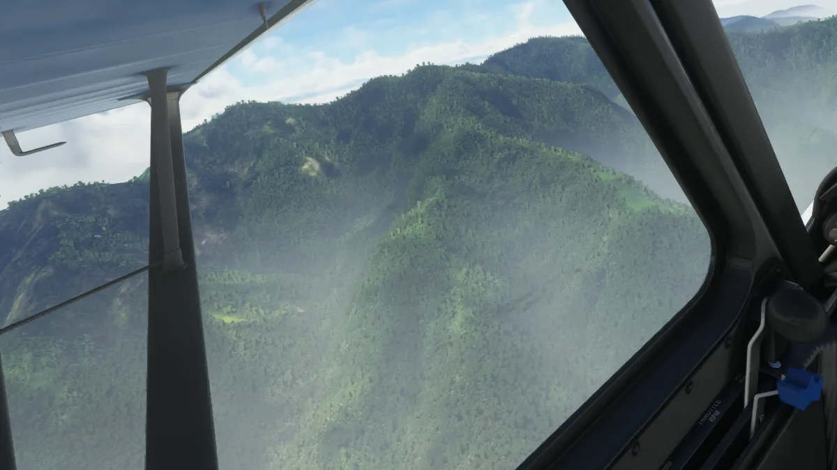 Bastante más adelante, intentamos una toma y despegue en el aeropuerto Silchar (VEKU), pero a pesar de usar el VOR apenas descubrimos la pista a casi 50 pies del suelo, pero de cualquier manera logramos tocar a más de la mita de la pista 06.
