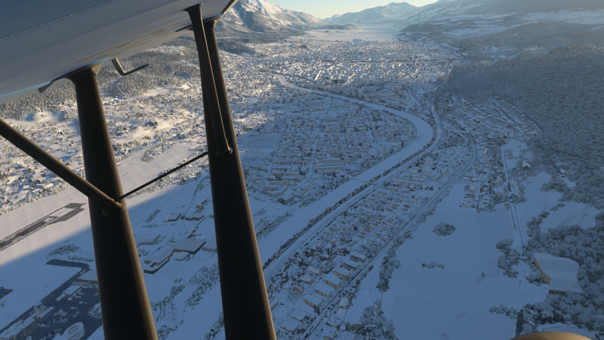 El 08/02/23 realizamos la etapa 84 del tour mundial con reglas de vuelo visual. Volamos desde LOWI Innsbruck (Austria) despegando con control de torre en Vatsim, quien nos autorizó al despegue por pista 26 entre dos aviones IFR que aterrizaban, y nos pidió volar al punto Sierra para desde allí ya proseguir nuestra ruta.