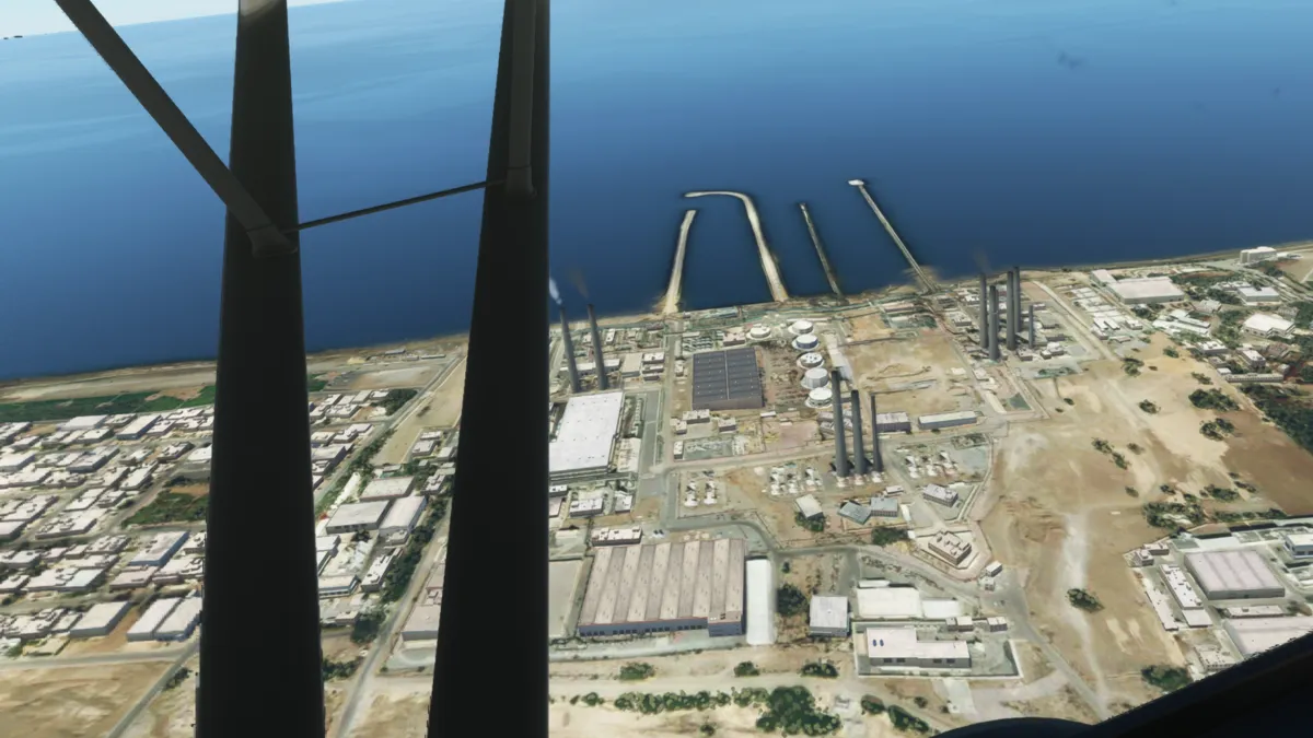 El 15/05/23 realizamos la etapa 112 del tour mundial con reglas de vuelo visual. Volamos desde el aeropuerto Muscat/Seeb Intl (OOMS) en Omán, despegando desde la intersección de la pista 08 derecha, para ingresar viento en cola del circuito a izquierda, y cruzar “abeam” la torre, para luego proseguir la ruta de la costa hacia el sur.