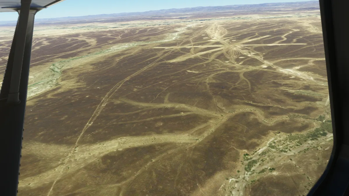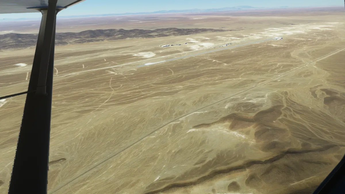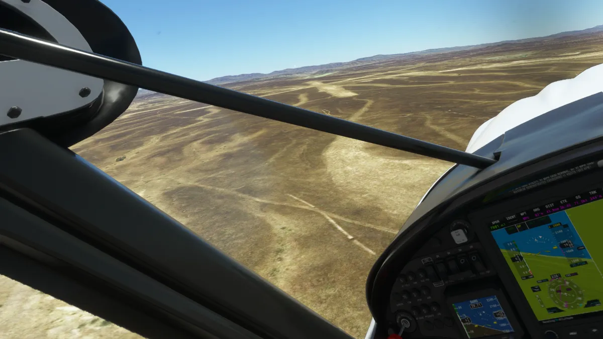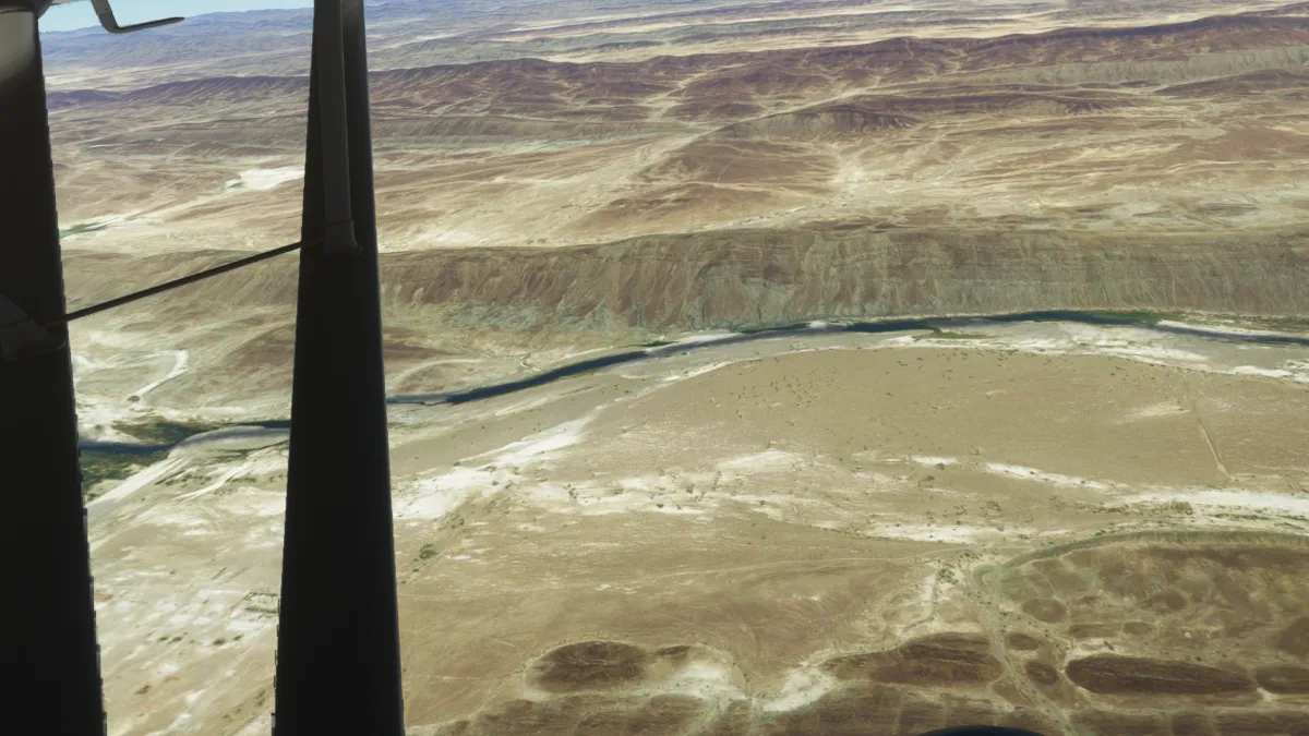 Al ser OOSR un aeropuerto con dos pistas de tierra, no encontramos la primera en una primera pasada, así que tras visualizar donde se encontraba la segunda, realizamos un giro a derechas y encaramos la toma y despegue por la pista 05.
