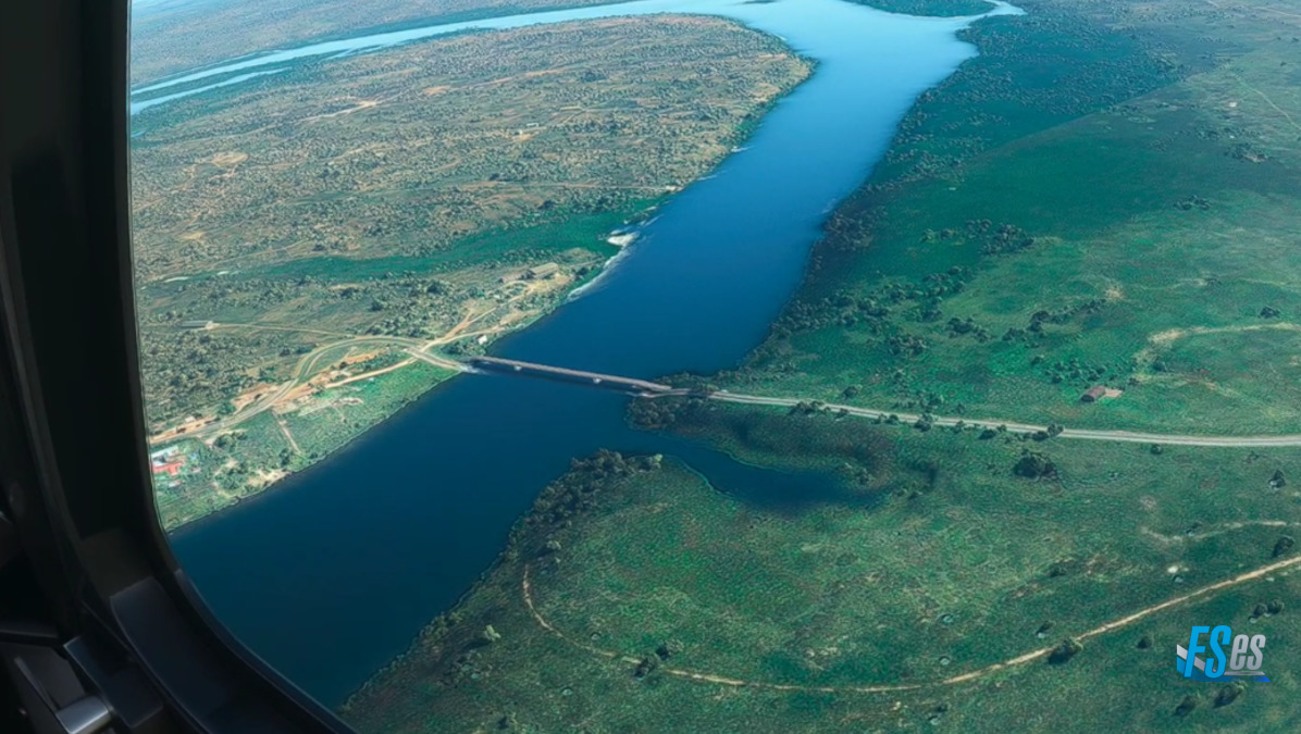 Siguiendo el río Nilo y aproximándonos a la ciudad de Juba, ingresando a base y final de la pista 31 del aeropuerto Juba (HJJJ) en South Sudan.