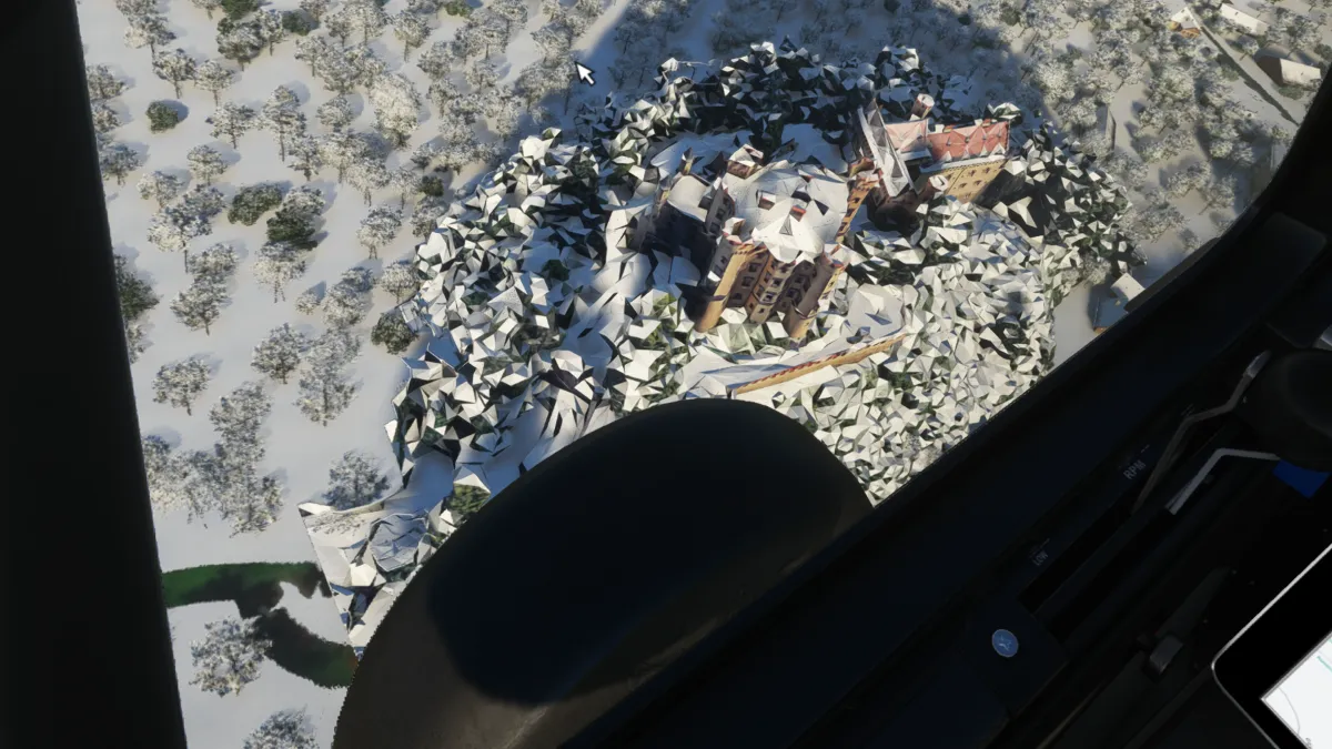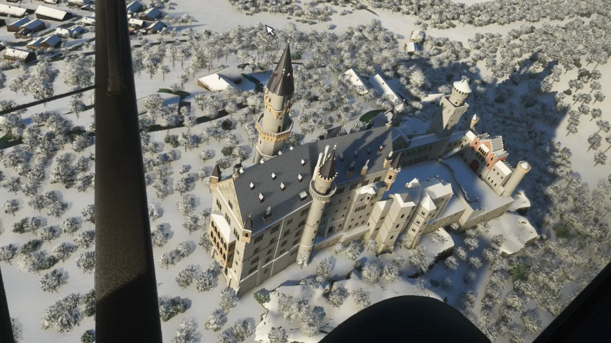 Ya sobre Alemania y cercano a Fussen sobrevolamos el castillo de Neuschwanstein y el de Hohenschwangau, para luego hacer nuestra primera toma y despegue en el aeródromo de planeadores de Fussen (EDGD) tomando a final de pista 26.