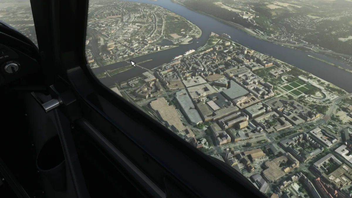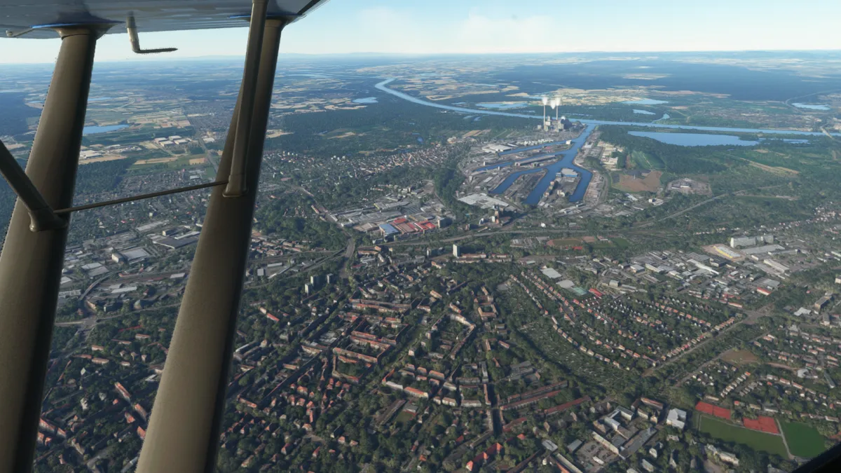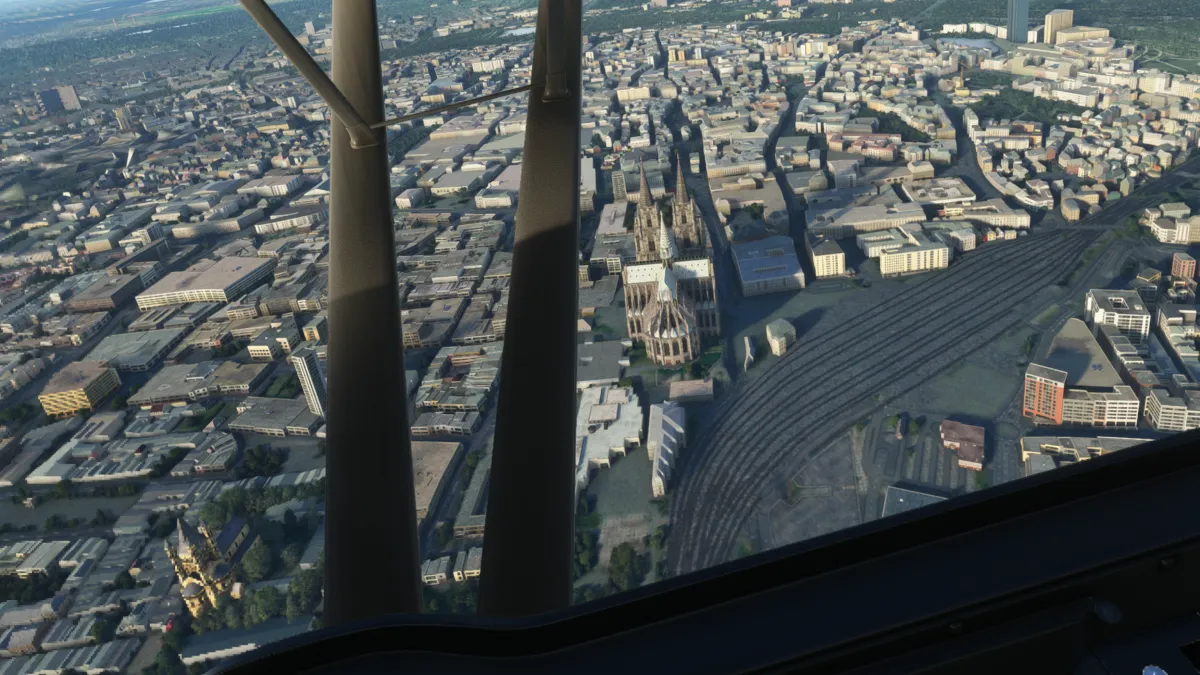 En Duesseldorf (EDDL) solicitamos al controlador de torre cruzar “abeam” (sobre el campo a 90 grados de la pista) la torre, lo cual se nos autorizó desde el punto S y luego continuar hacia N.