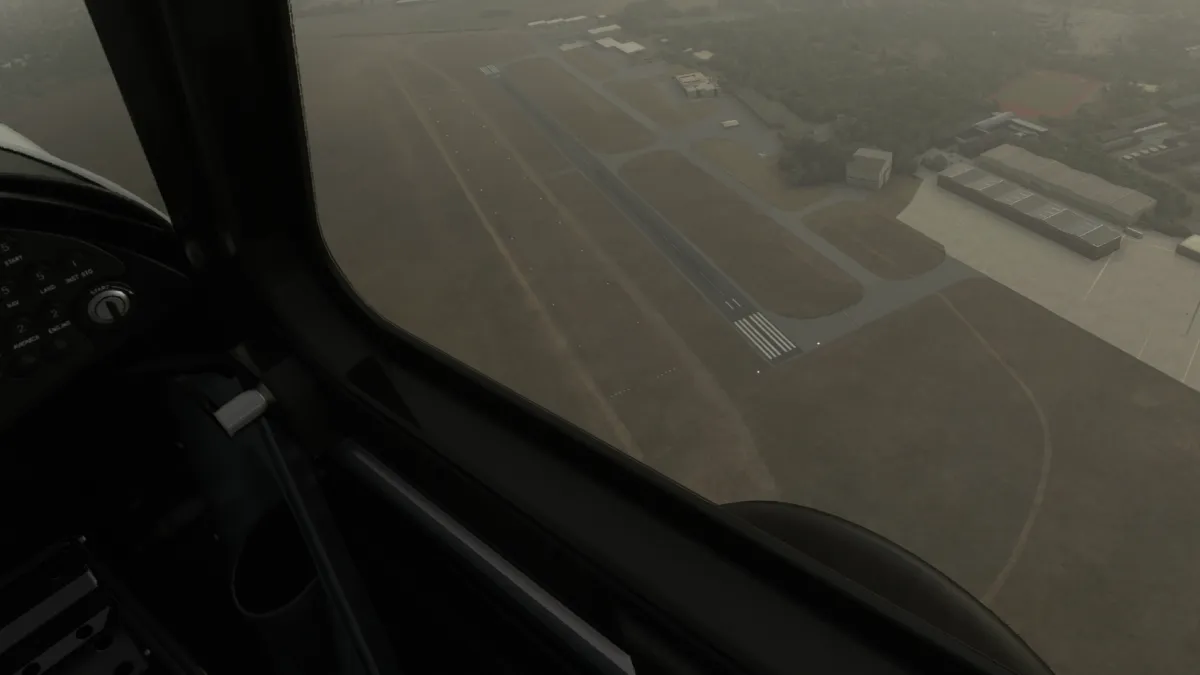 Luego continuamos hacia el noreste a destino, adentrándonos en zona de mucha bruma, para aterrizar finalmente en el campo de planeadores de Veendam Glider Site (EHVE) en Netherlands Paises Bajos, aproximándonos viento en cola derecha a la pista 26.