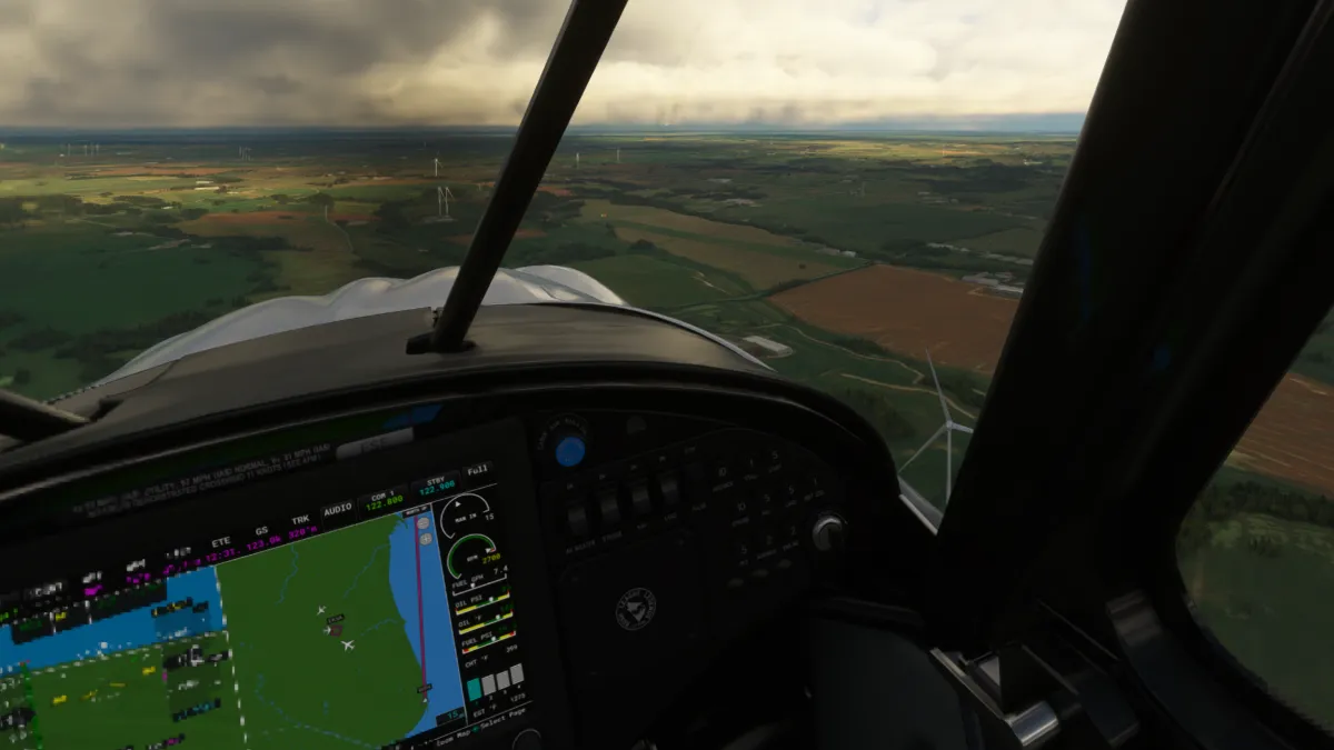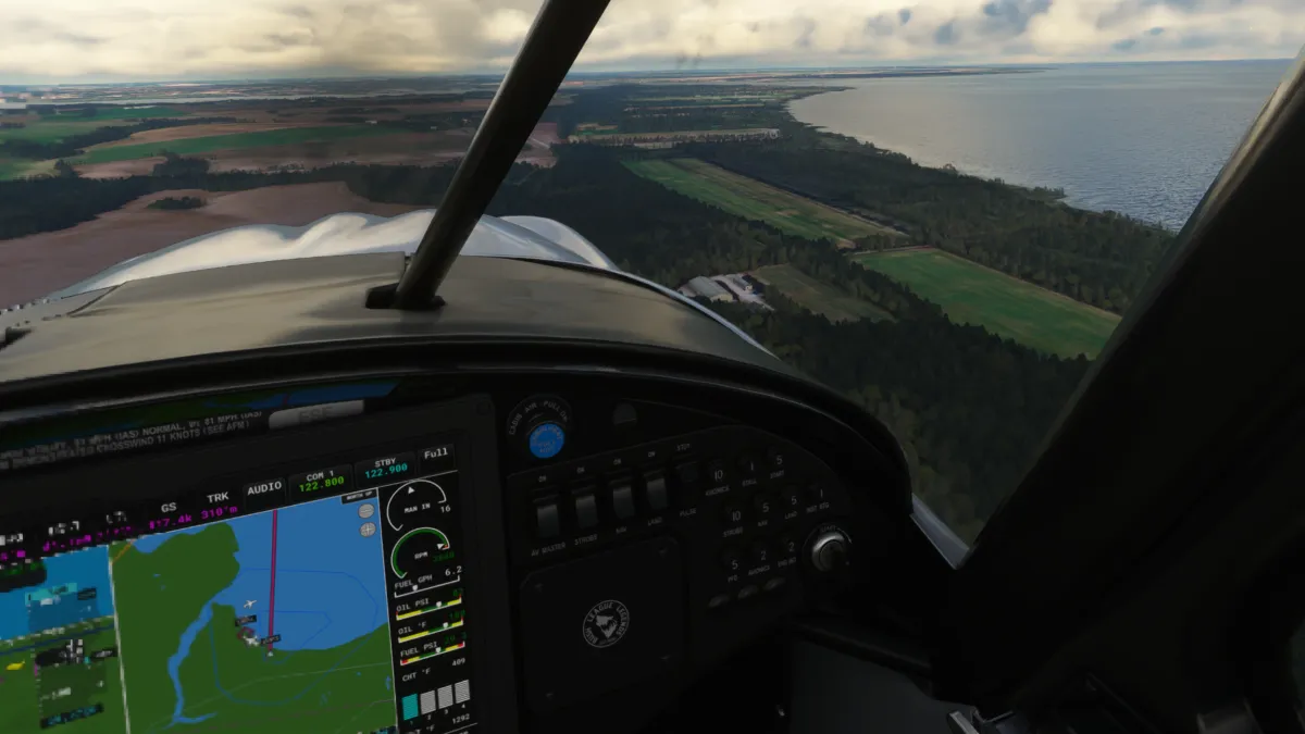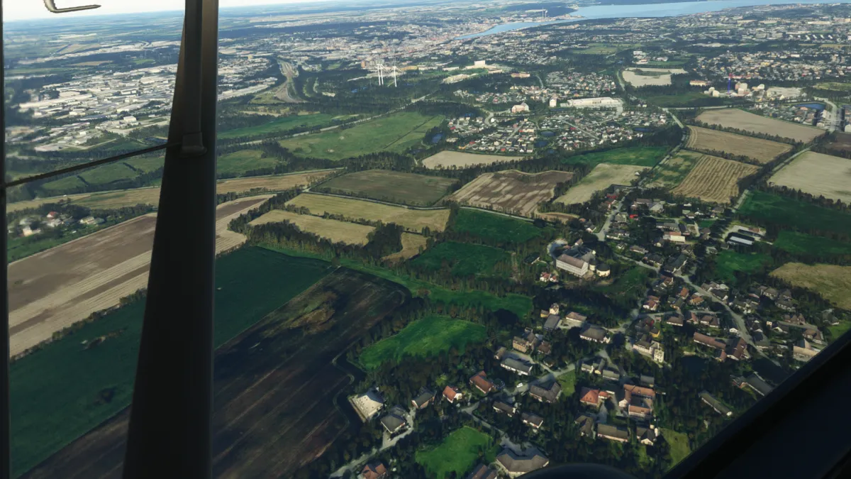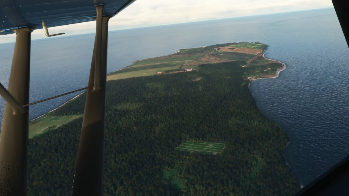 Unas pocas millas más al norte, realizamos la segunda toma y despegue en un pequeño aeródromo sobre la costa, el Estruplund Flyveplads (EKAL), ingresando a viento en cola derecha de la pista 13 y girando a base entre varios molinos de generación eléctrica eólica.