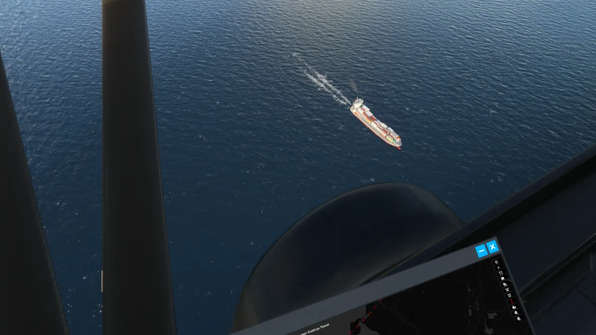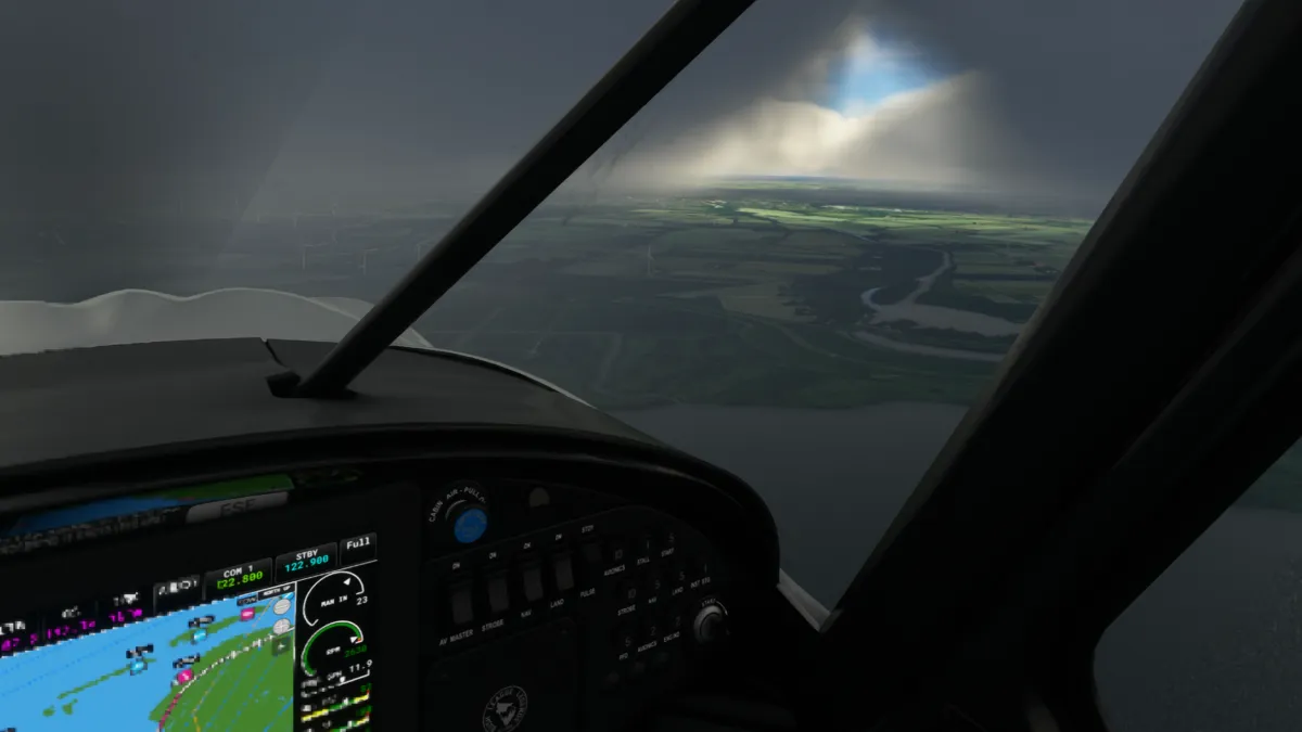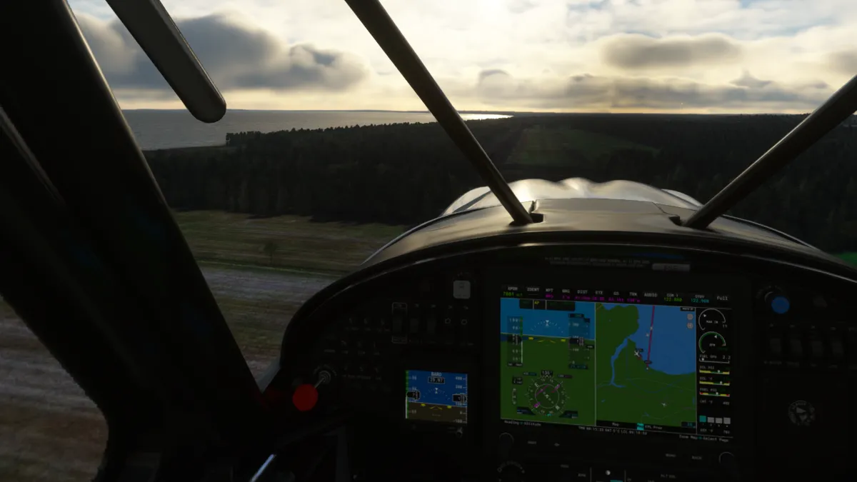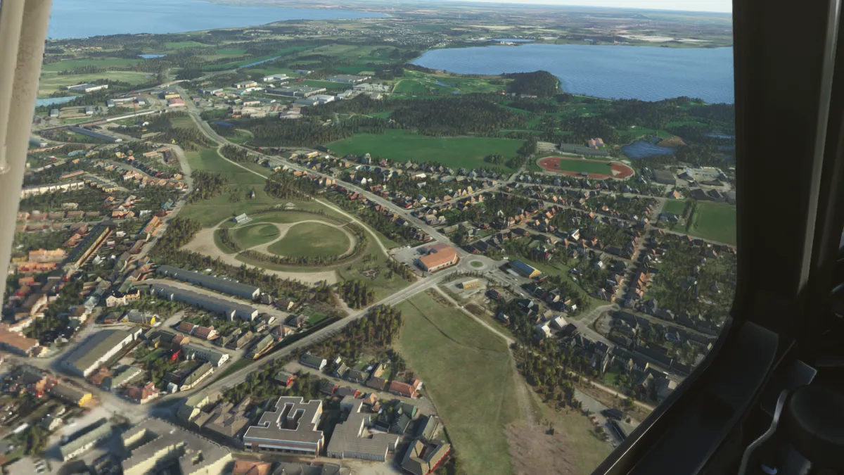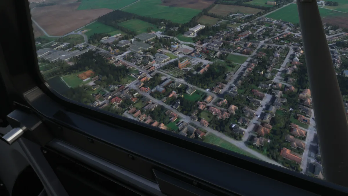Unas pocas millas más al norte, realizamos la segunda toma y despegue en un pequeño aeródromo sobre la costa, el Estruplund Flyveplads (EKAL), ingresando a viento en cola derecha de la pista 13 y girando a base entre varios molinos de generación eléctrica eólica.