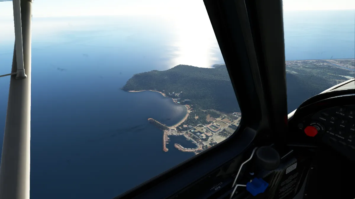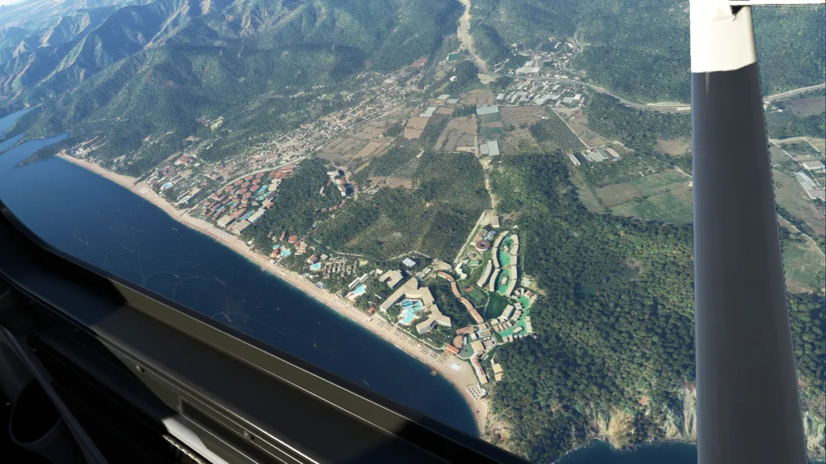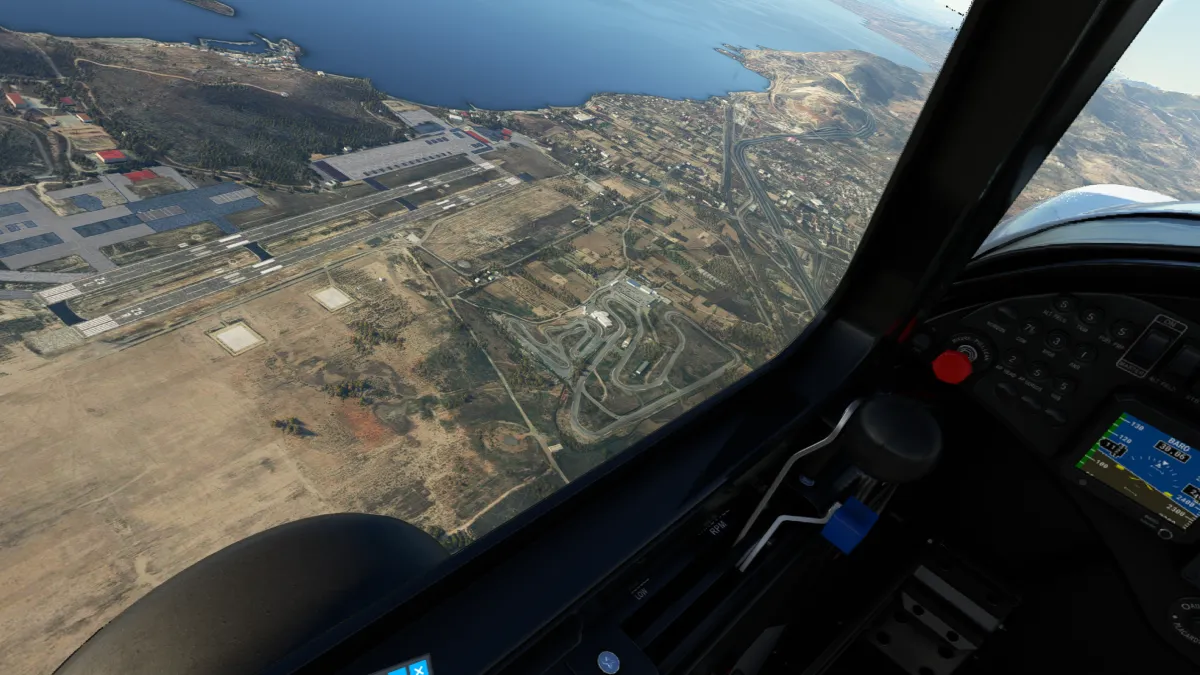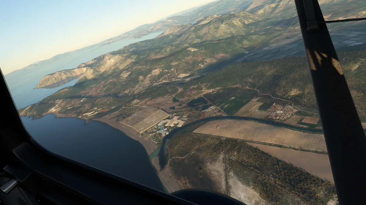 Comenzamos a seguir la costa sur de Turquía y realizamos una toma y despegue en el aeropuerto de Dalaman (LTBS) realizando un 360 para descender hacia la pista 01 y retomando la ruta saliendo viento en cola izquierda.