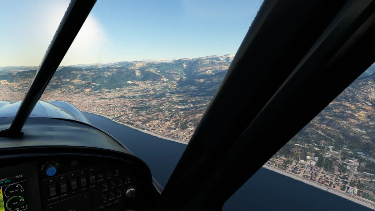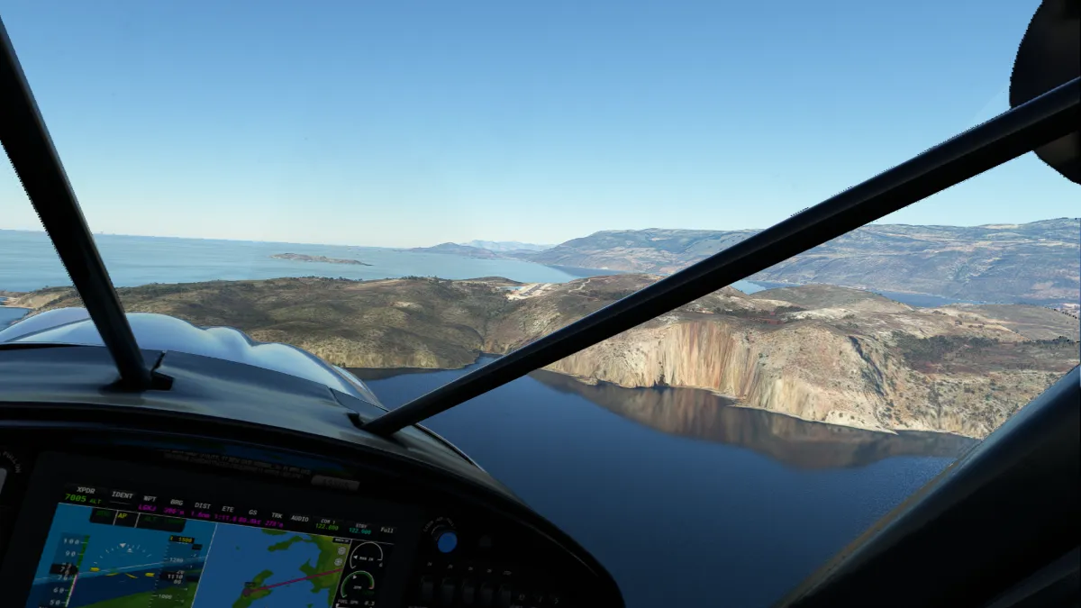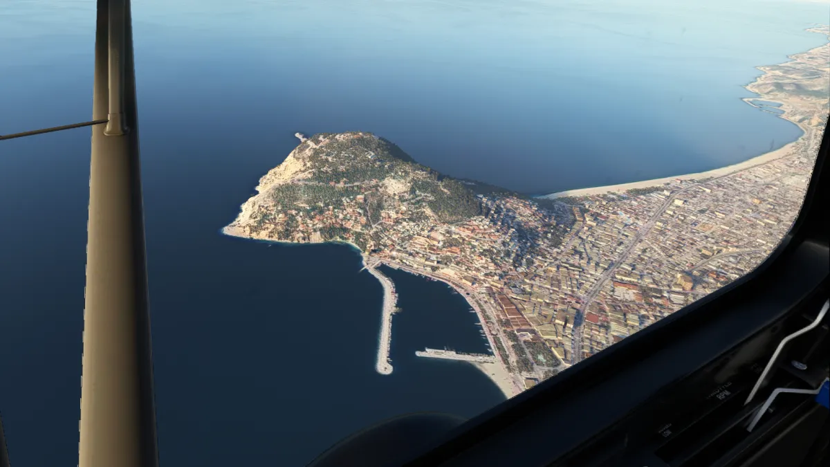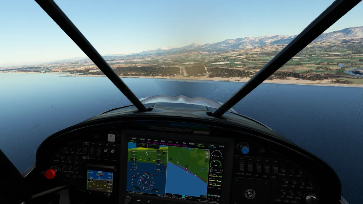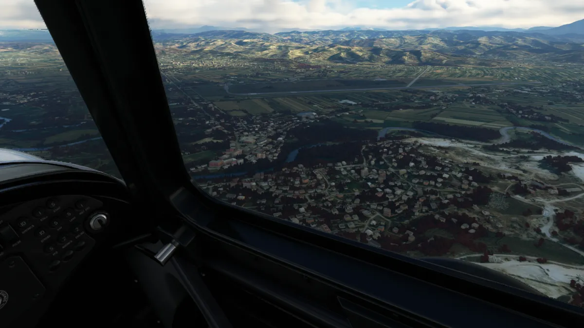 Comenzamos a seguir la costa sur de Turquía y realizamos una toma y despegue en el aeropuerto de Dalaman (LTBS) realizando un 360 para descender hacia la pista 01 y retomando la ruta saliendo viento en cola izquierda.