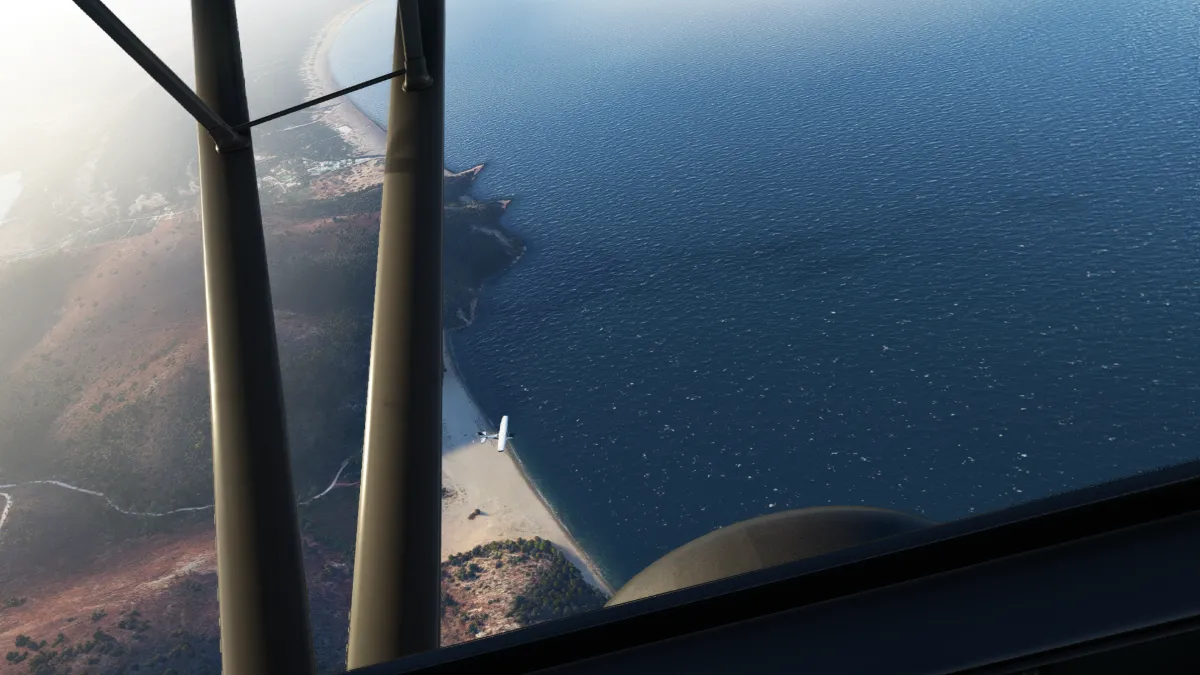 Aproximándonos a Santorini, nos dirigimos a hacia Kamari, para realizar una toma y despegue en el aeropuerto Santorini (LGSR), ingresando a base sobre la playa Kamari y luego a final derecha para la pista 33.
