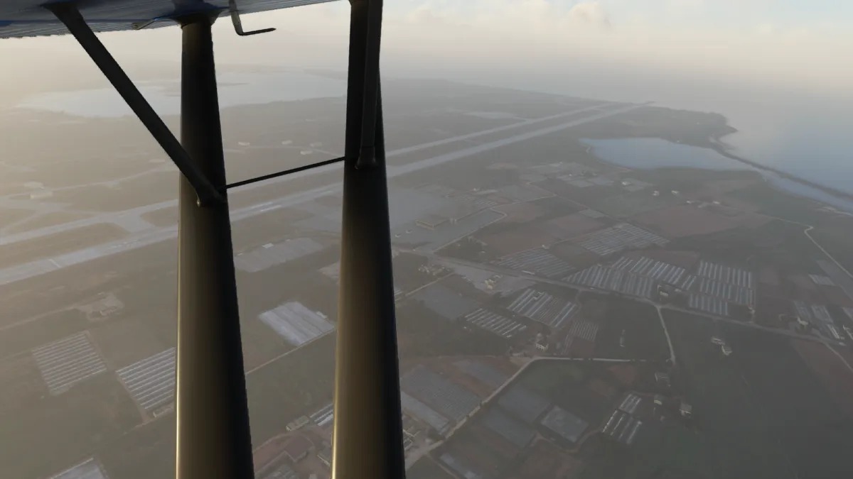 En camino buscamos una bandada de gansos sobre el lago Voulkaria, pero no los encontramos (probablemente por la espesa niebla de la zona); y posteriormente realizamos una toma y despegue en el aeropuerto de Aktion AB (LGPZ) todavía en Grecia, ingresando a viento en cola derecha de la pista 07L.