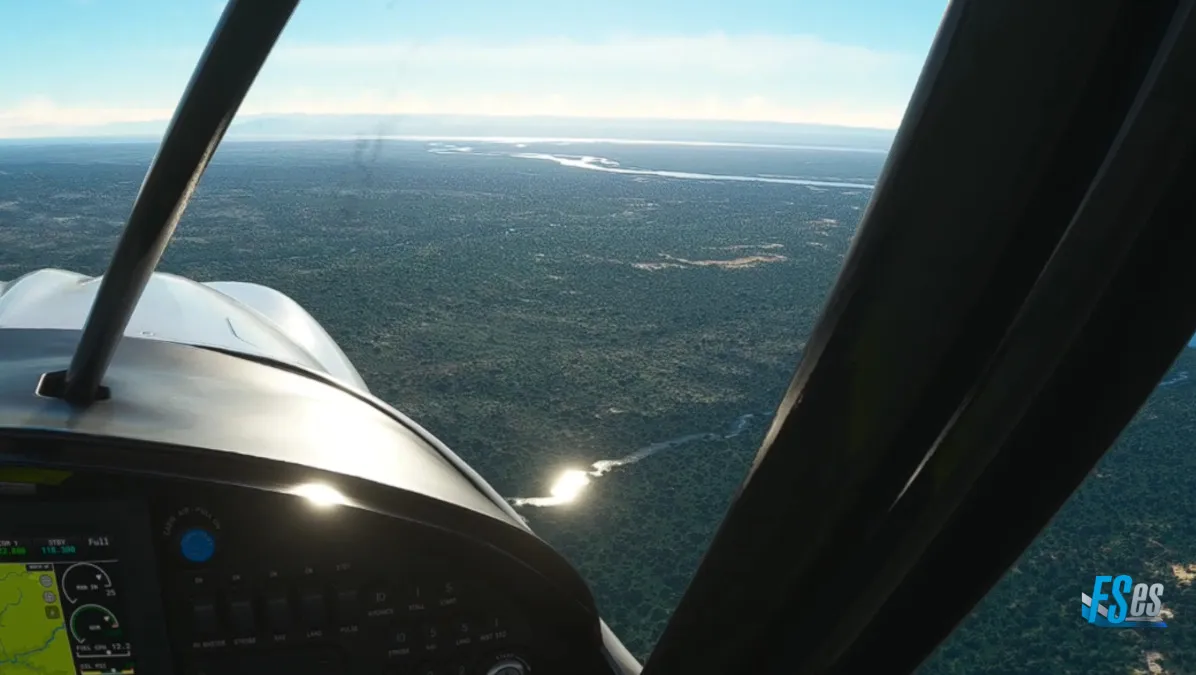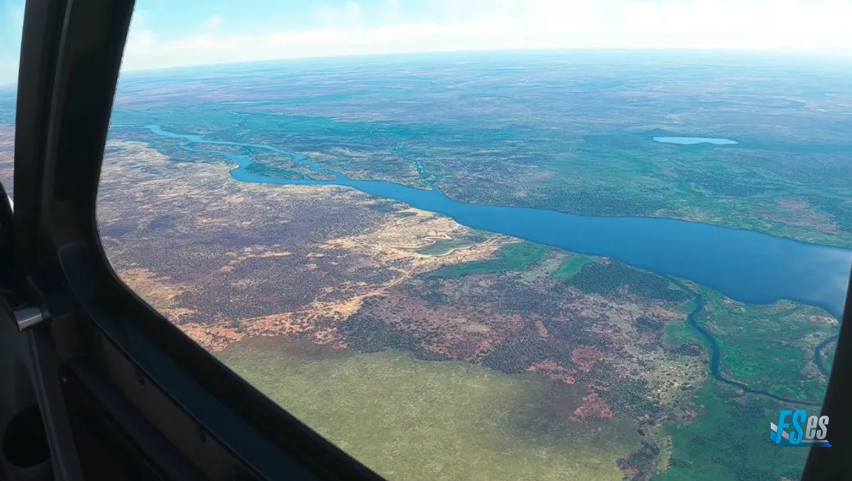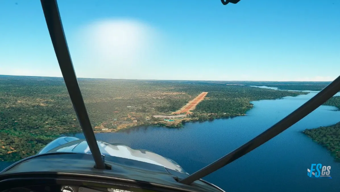 Ya siguiendo al río Nilo Victoria, realizamos una primera toma y despegue, en el aeródromo Chobe Safari Lodge (HUOY), realizando viento en cola derecha sobre el río para tomar por pista 10.