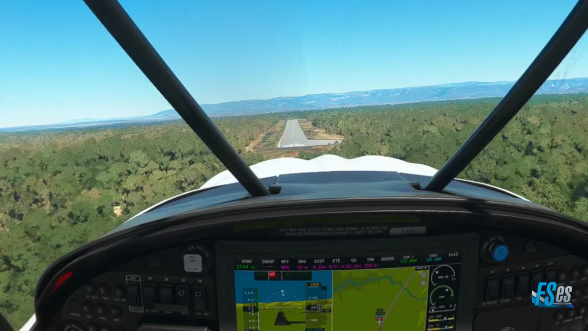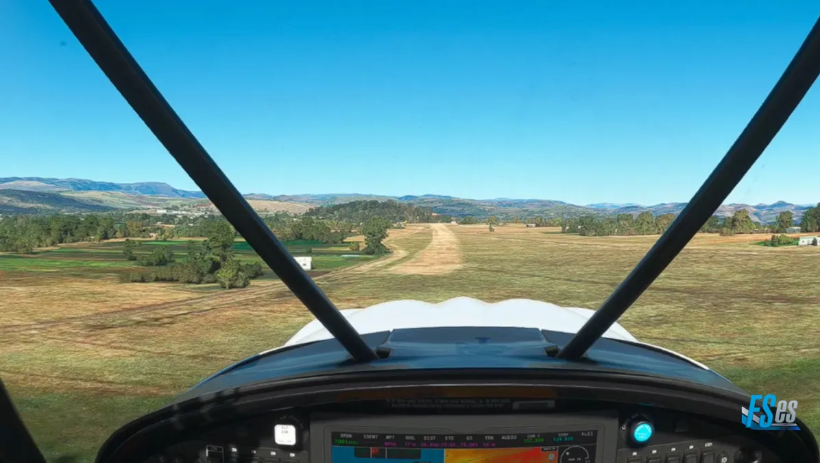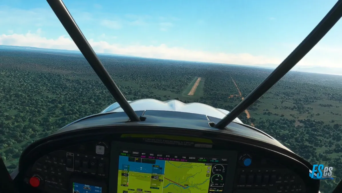Ya llegando a nuestro destino, nos desviamos a la izquierda de la ruta planificada para hacer una segunda toma y despegue, ingresando a final de la pista 23 en el aeródromo Bugungu (HUPA).