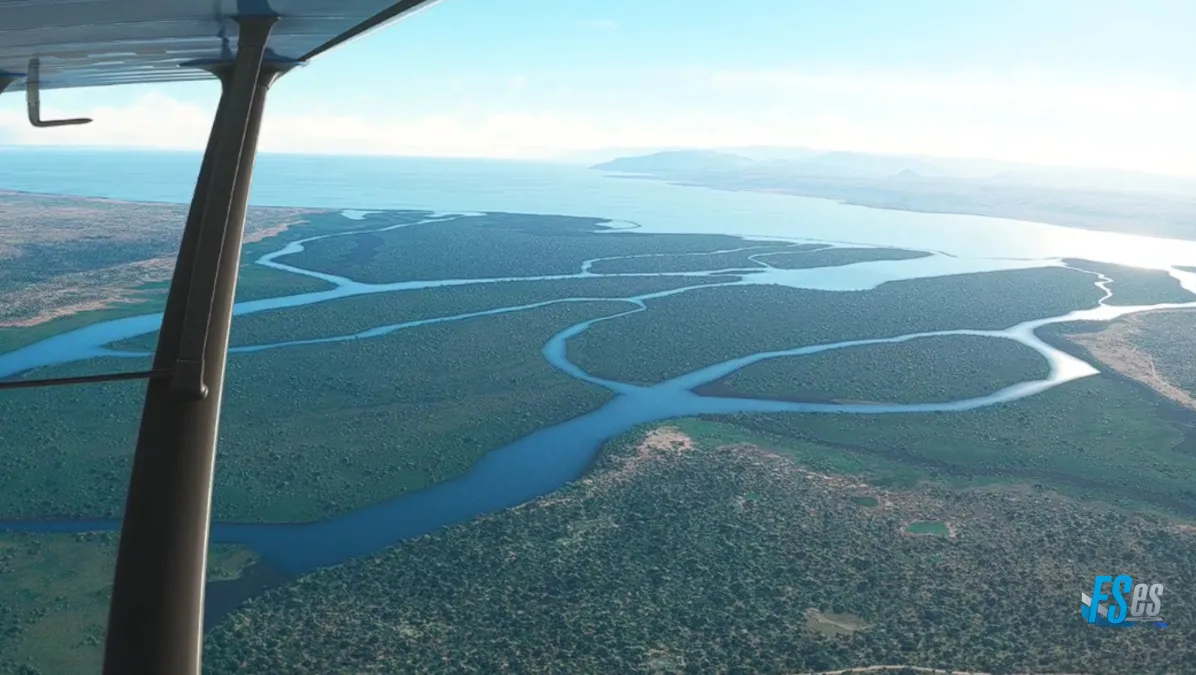 A posterior llegamos al delta que forma el río Nilo al ingresar al Lago Alberto, y de allí al destino ingresando en final de la pista 06 del aeródromo Pakuba (HUKF), todavía en Uganda.