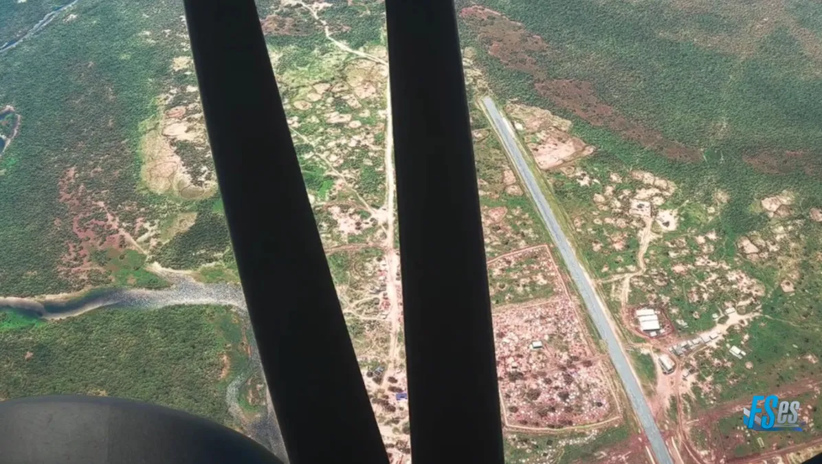 Una última toma y despegue la realizamos en otro aeródromo del mismo nombre, Moyo (HUMC), cercano al pueblo de Kajo Keji, ingresando a final de la pista 31.