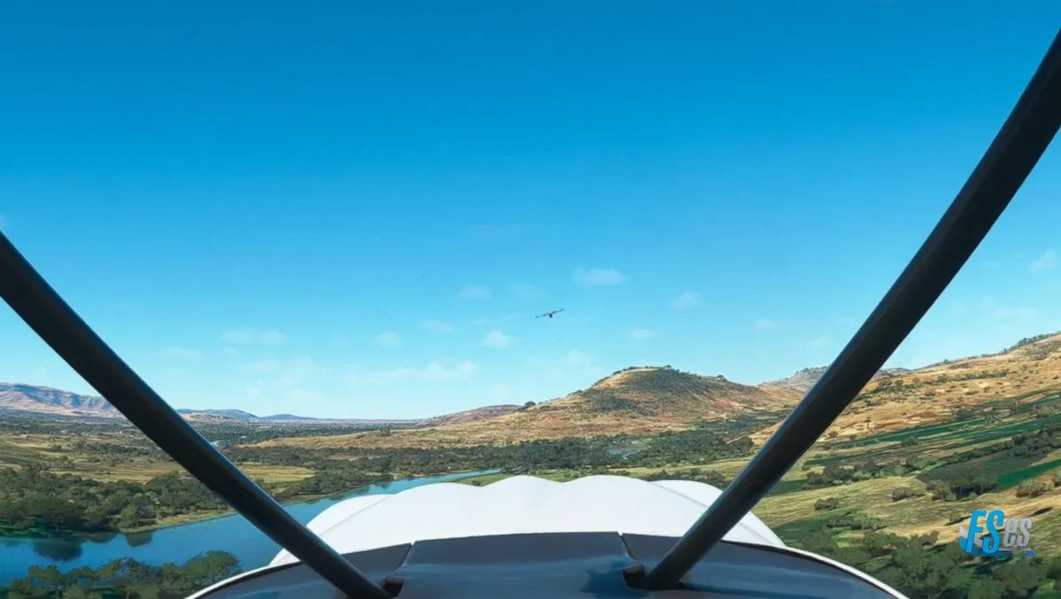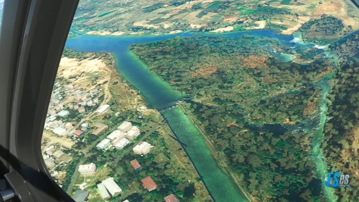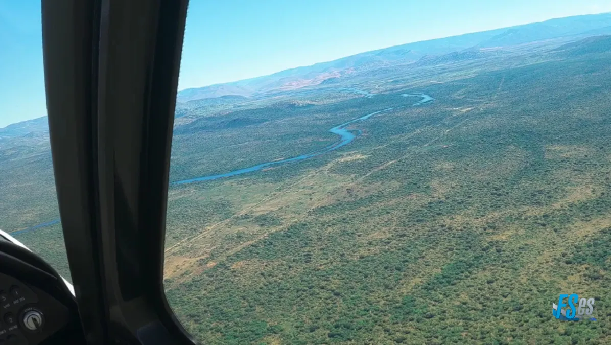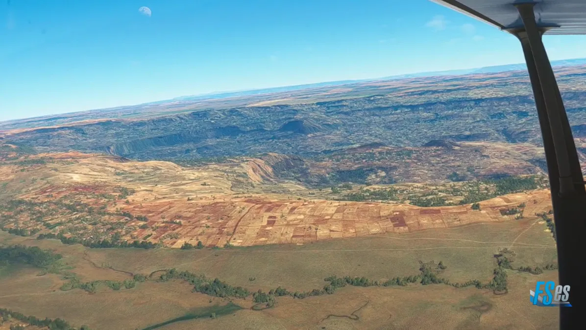 Desde este último punto en Guguftu volamos a destino, subiendo a 13500 pies para sortear unas montañas y descender luego para extender el tramo final sobre el río, para aterrizar como número dos, por la pista 35 del aeropuerto Combolcha (HADC) en Ethiopia.