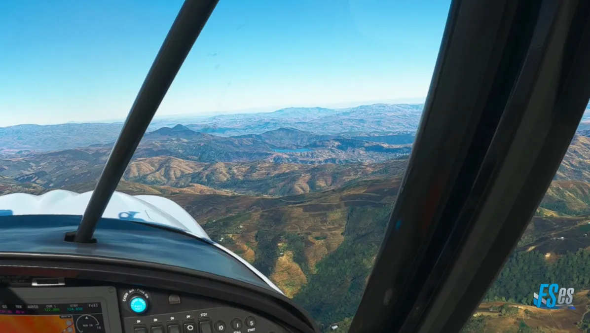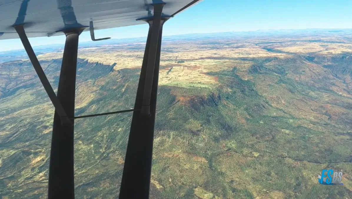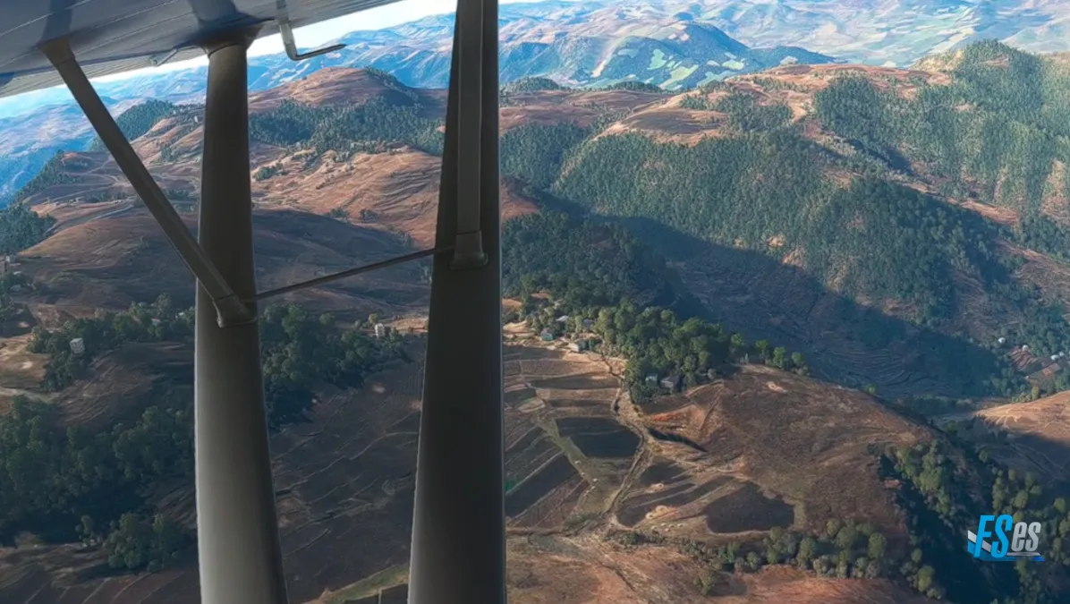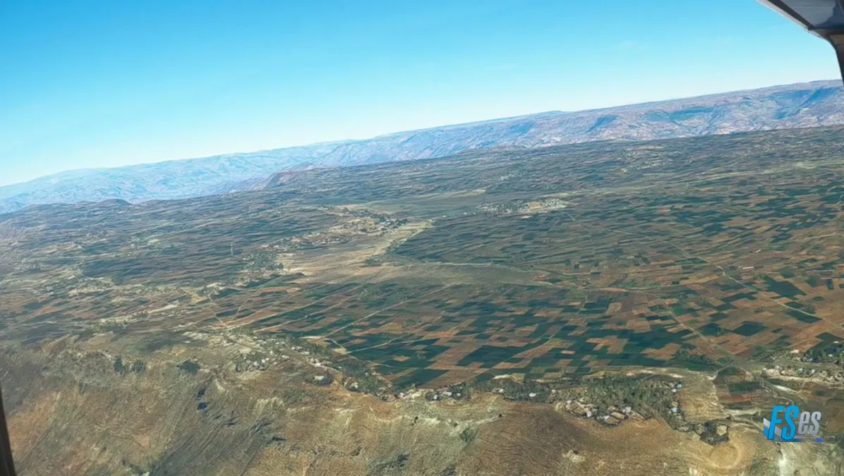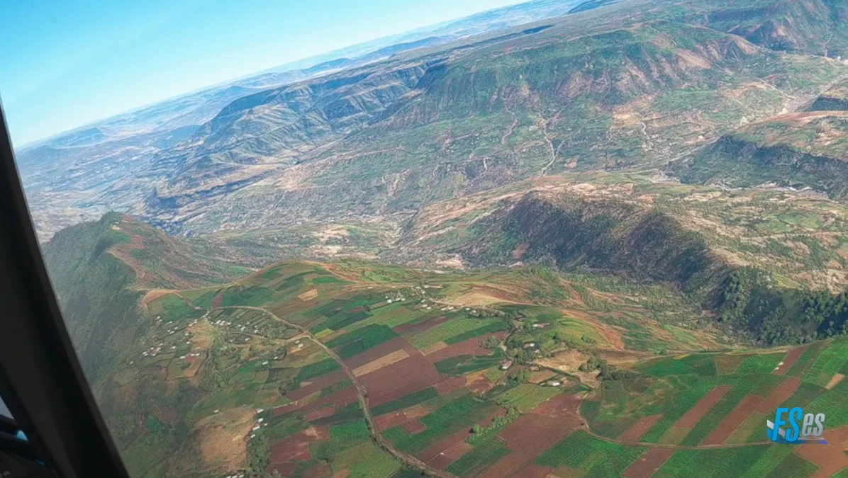Subimos a 10000 pies para sobrevolar una gran meseta donde se encuentra el poblado de Ashenat, una gran meseta totalmente cultivada.