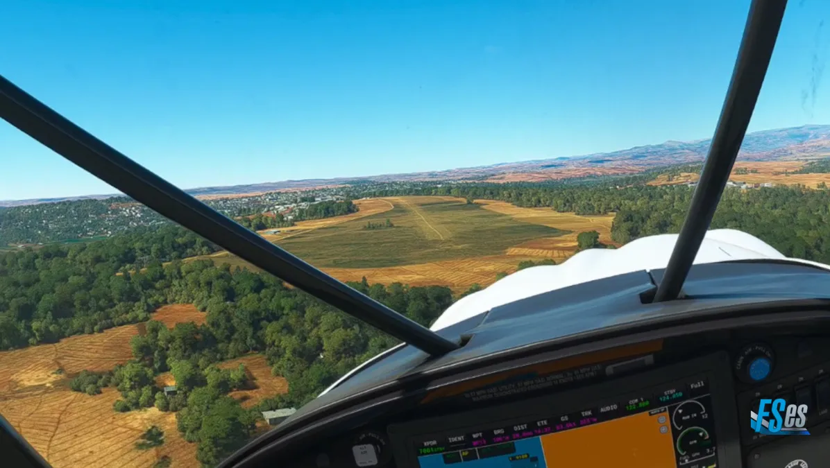 Posteriormente, ingresamos en un valle bajo, siempre siguiendo al Nilo, y desviándonos a izquierda para una segunda toma y despegue en el aeródromo Moyo (HUMY) donde tomamos por pista 02. Este aeródromo se ubica al este de la ciudad de Moyo.