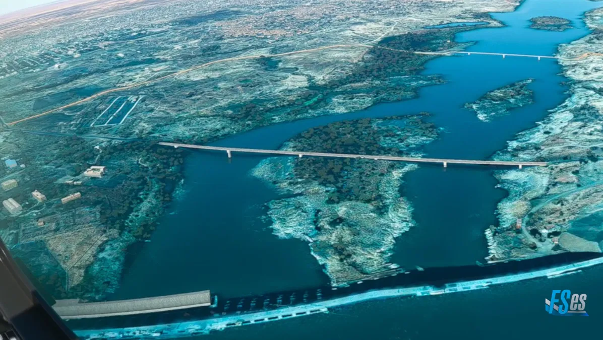 Siguiendo el río Nilo y aproximándonos a la ciudad de Juba, ingresando a base y final de la pista 31 del aeropuerto Juba (HJJJ) en South Sudan.