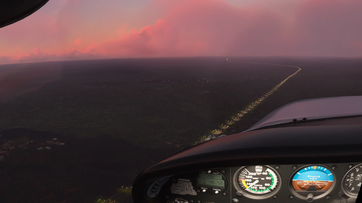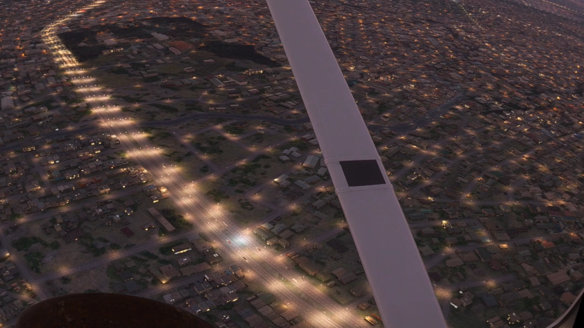 Posteriormente, entramos al espacio aéreo de Nigeria, mientras continuábamos el vuelo a Benin (y acá se puede prestar a confusión: salimos del país Benin, pero volamos al país Nigeria, a la ciudad de nombre Benin) nos fuimos alejando de la costa y guiando por carreteras. Y ya en condiciones de vuelo visual nocturno, encaramos directamente a final de la pista 23 del aeropuerto de Benin (DNBE).