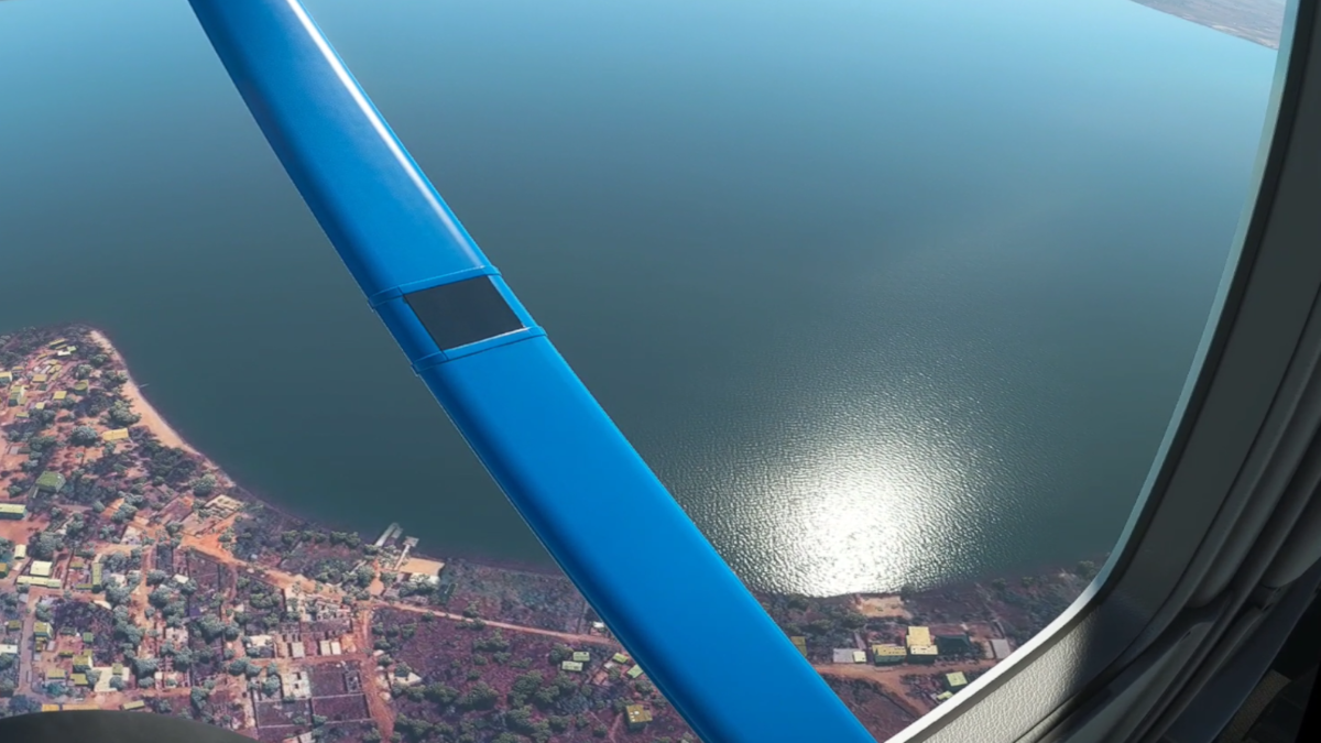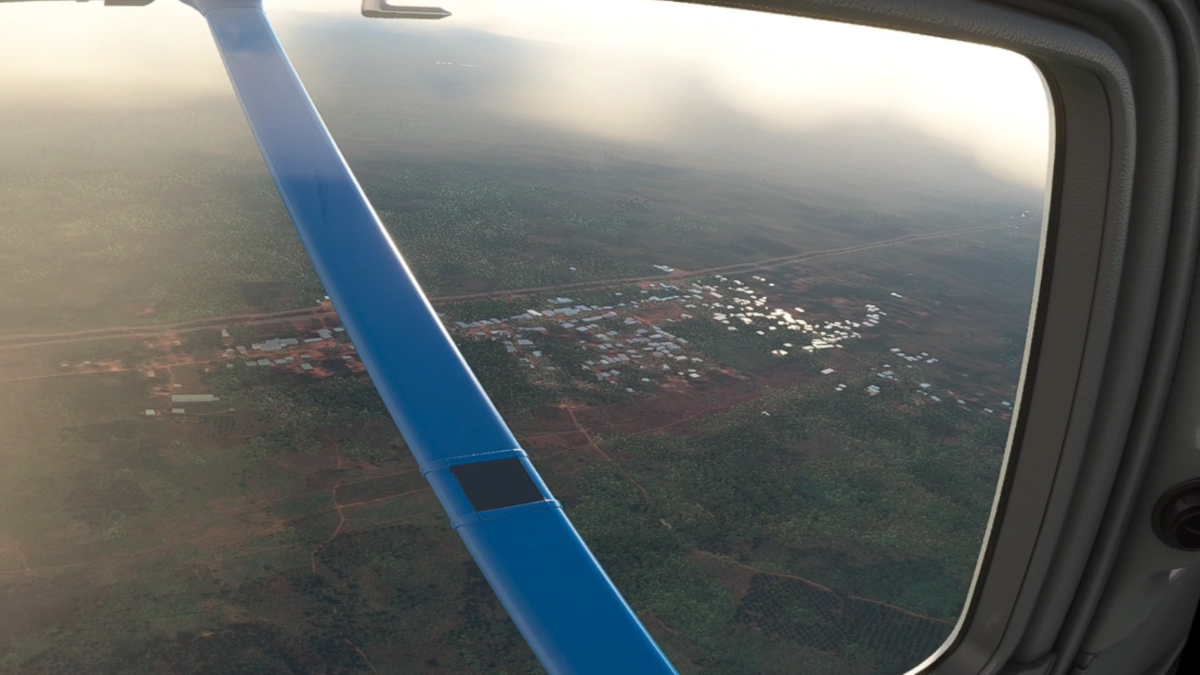 El 15/06/22 volamos la etapa 22 del tour mundial desde el aeropuerto Cadjeboun (DBBB) en Cotonú, Benin. Las condiciones meteorológicas estaban bastante degradadas, por lo que la primer parte del vuelo la realizamos en condiciones MVFR (Marginal Visual Flight Rules). Si bien el vuelo estaba programado para 1500 pies nos mantuvimos a unos 1100 para cubrir el minimo de seguridad de 1000 pies sobre el objeto mas elevado, ya que pasabamos por muchas ciudades o pueblos. Despegamos desde la pista 24 (desde el punto de espera a mitad de la pista) y realizamos circuitos a izquierdas para luego proseguir por línea de costa hacia el este.