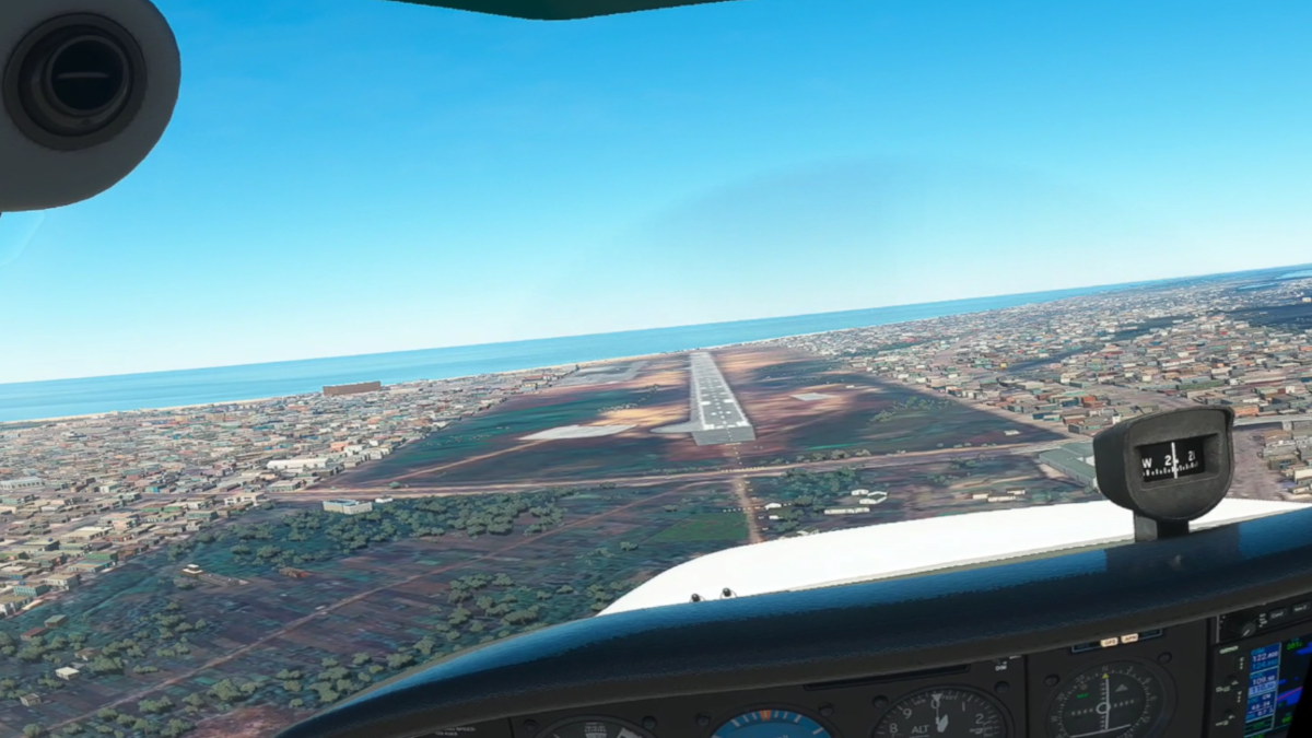 El 08/06/22 volamos la etapa 20 del tour mundial desde el aeropuerto Felix Houphouet-Boigny (DIAP) en Costa de Marfil. Despegamos desde la pista 21 y realizamos circuitos a derecha (para hacer foto del aeropuerto) y luego cruzamos el campo “abeam” (a 90 grados) sobre la torre para dirigirnos hacia el mar y proseguir por línea de costa hacia el este con buenas condiciones visuales volando a 1500 pies.