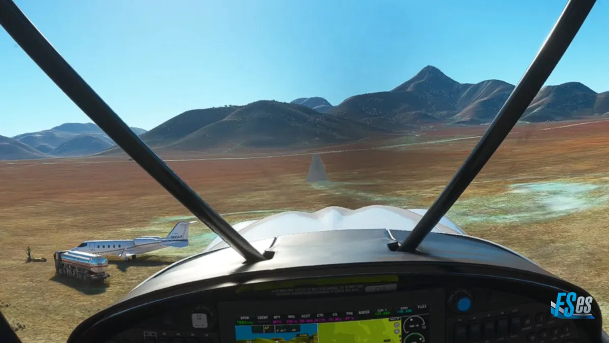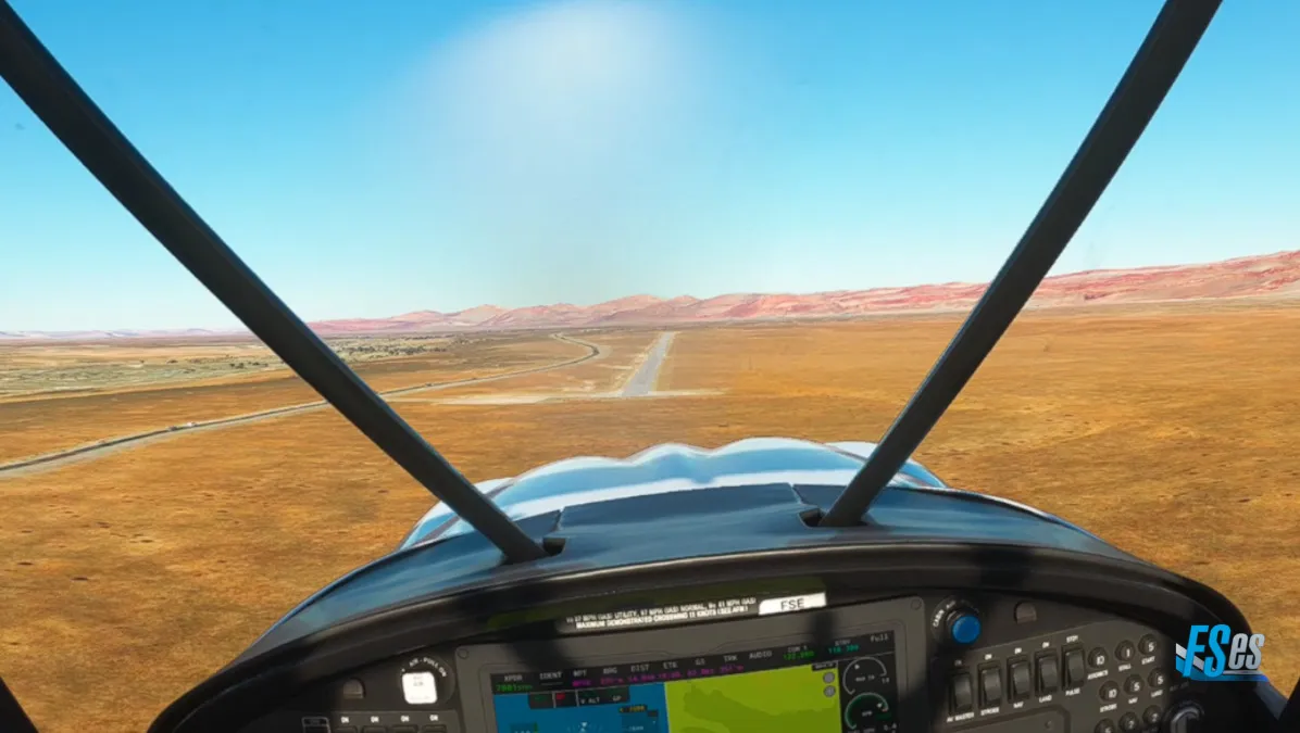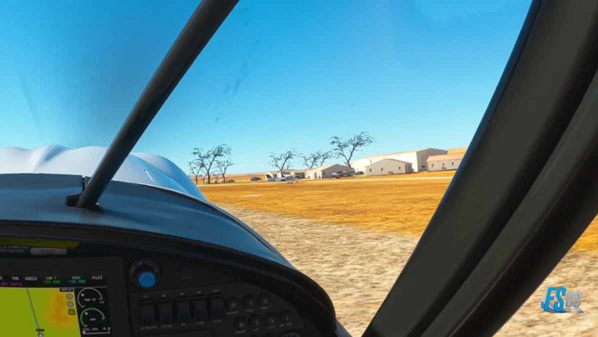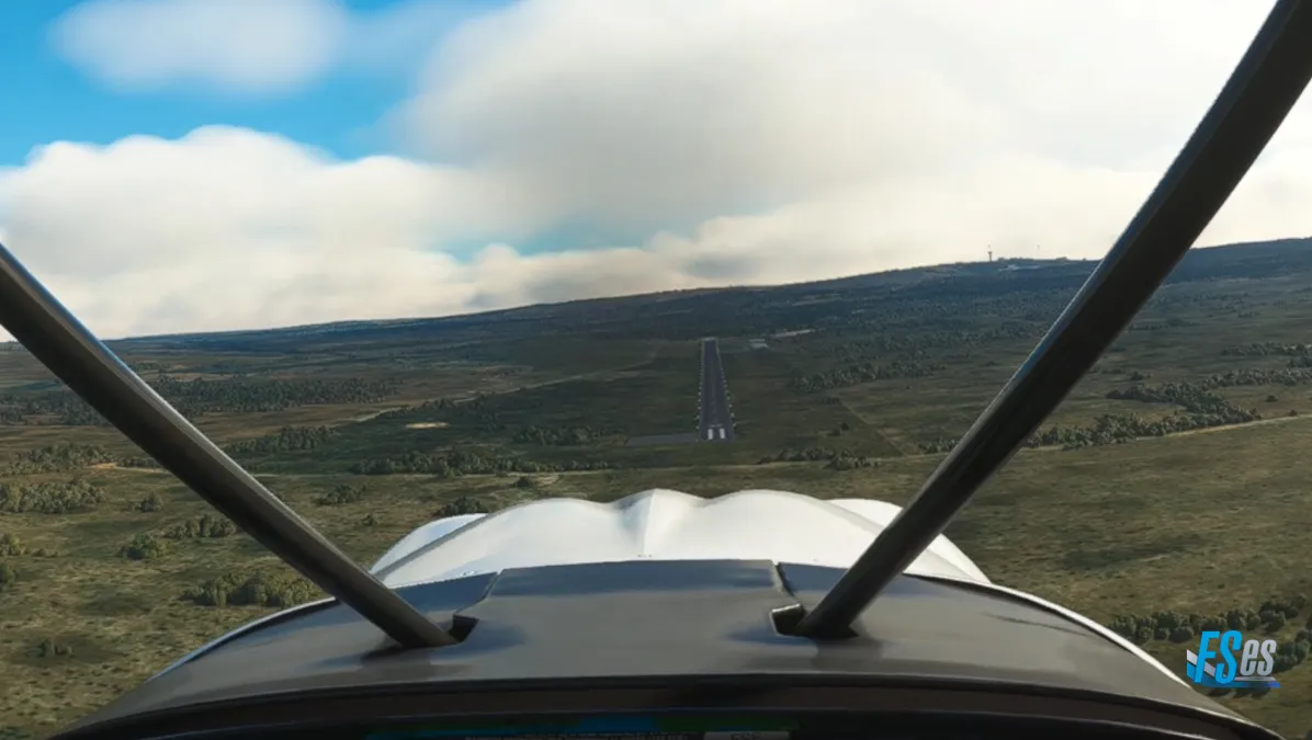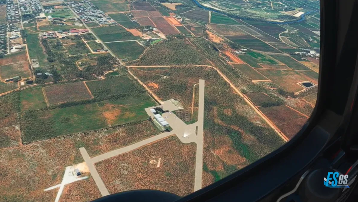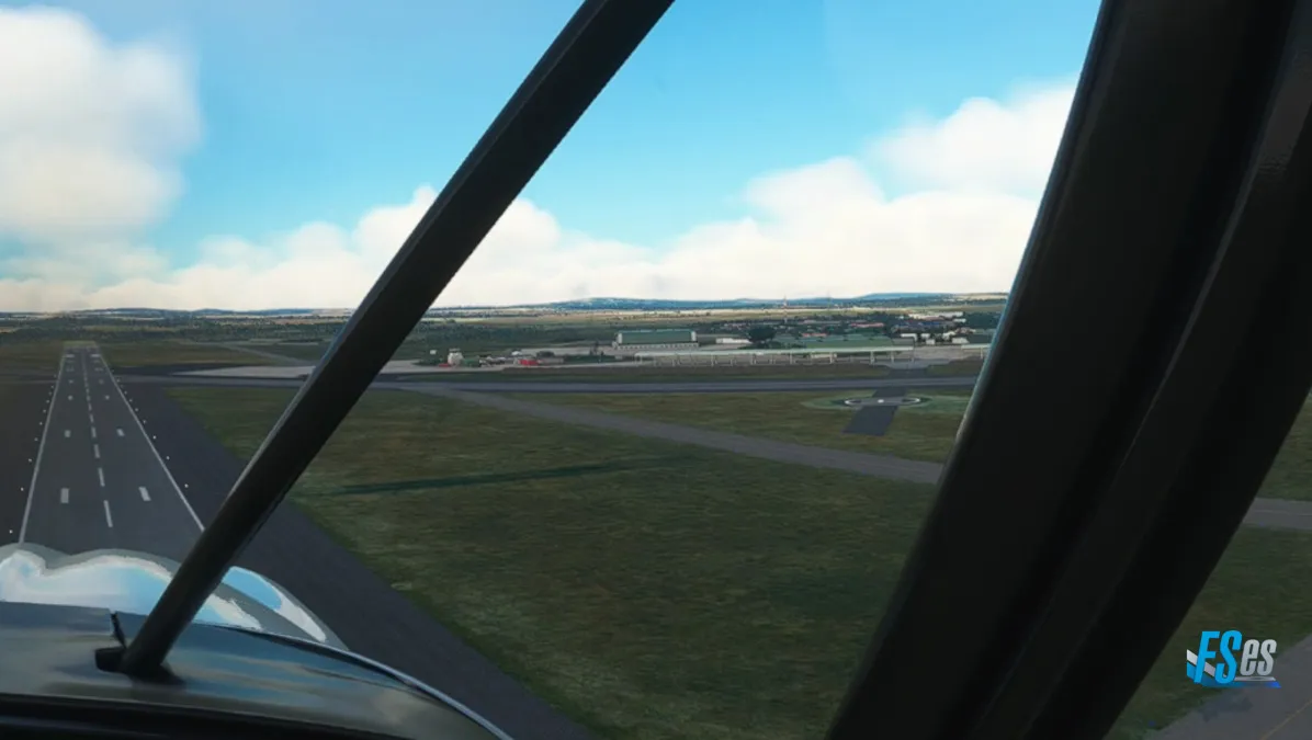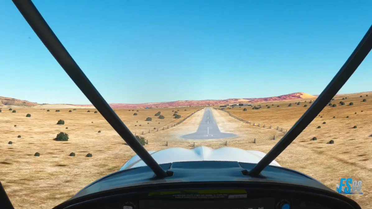 Siguiendo ahora sobre la C13, y en el cruce con la B4, nos encontramos con otro aeródromo de tierra, el Aus Airport (FYAS) donde hicimos otro touch and go por pista 28.