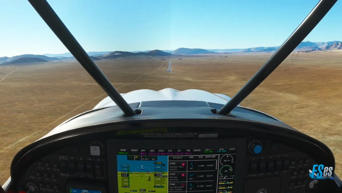 Más adelante dentro de la reserva Knervlakte realizamos otro touch and go en el Monosite Airfield (FAVT) tomando en pista 21.
