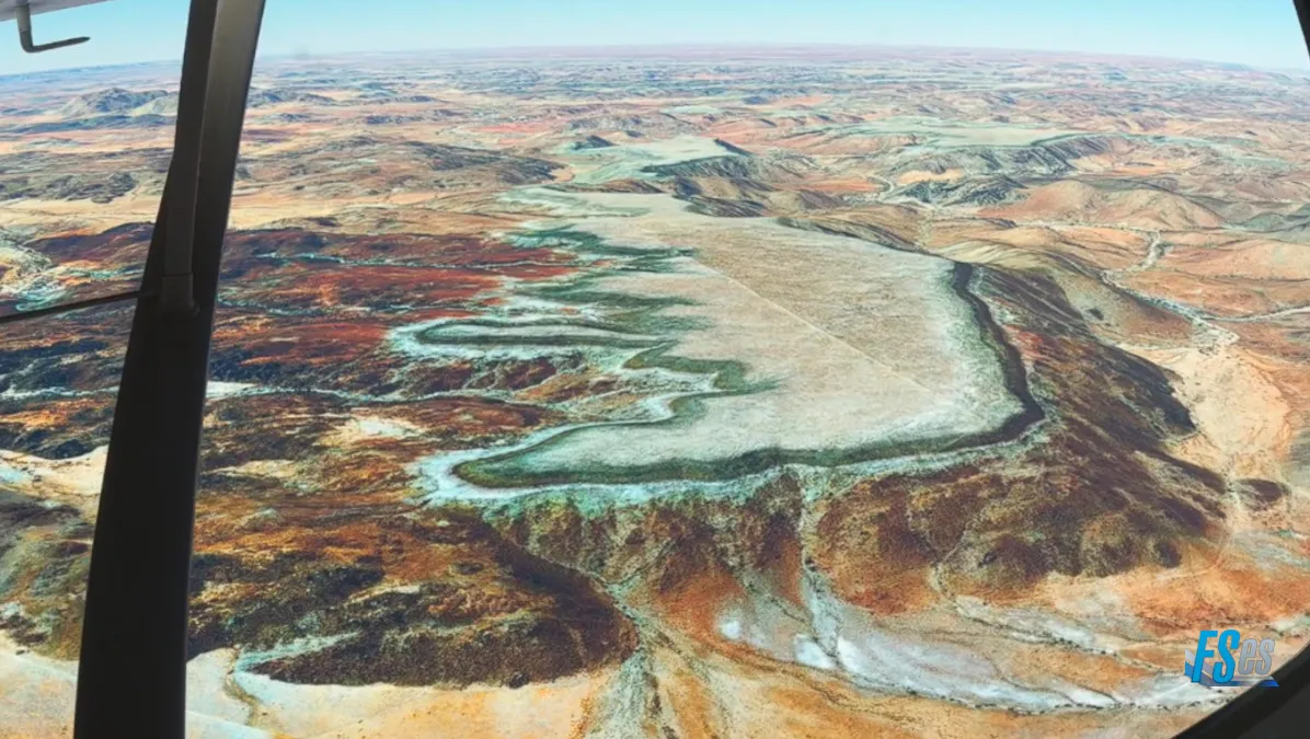 El 17/08/22 volamos la etapa 40 del tour mundial desde el aeródromo de Wolwedans Airport (FYWD) en la reserva NamibRand Nature, despegando por pista 32 y circuito derecha para comenzar la ruta planificada.