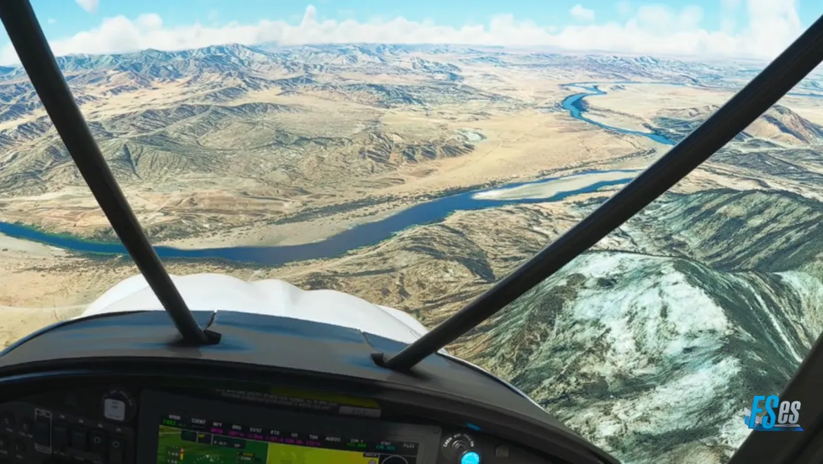 Ya con rumbo al destino, siguiendo el río Orange, y ya sobre territorio de Sudáfrica, nos aproximamos a final de la pista 19 (de grava) del aeropuerto Alexander Bay (FAAB).