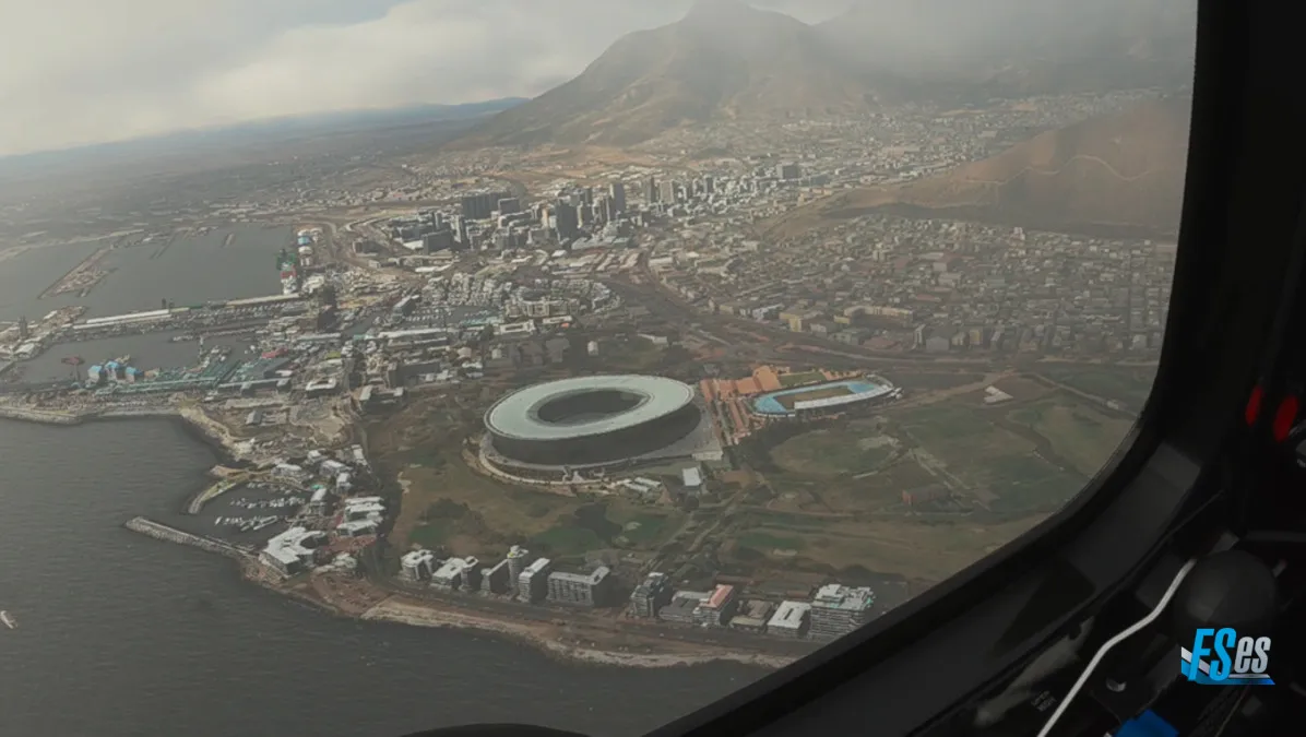 El 27/08/22 volamos la etapa 43 del tour mundial desde aeropuerto de Ysterplaat AB (FAYP) en South Africa, despegando por pista 20 y realizando circuito a derechas para cruzar abeam la torre y dirigirnos hacia la costa. La ruta planificada era pasar abeam del aeropuerto internacional Cape Town (FACT), pero habiendo control de torre, se nos indicó bordear la zona de control (ATZ) del mismo por la costa, volando a 1000 pies sobre el terreno para cruzar el QDM de la pista 19 (la activa en Cape Town).