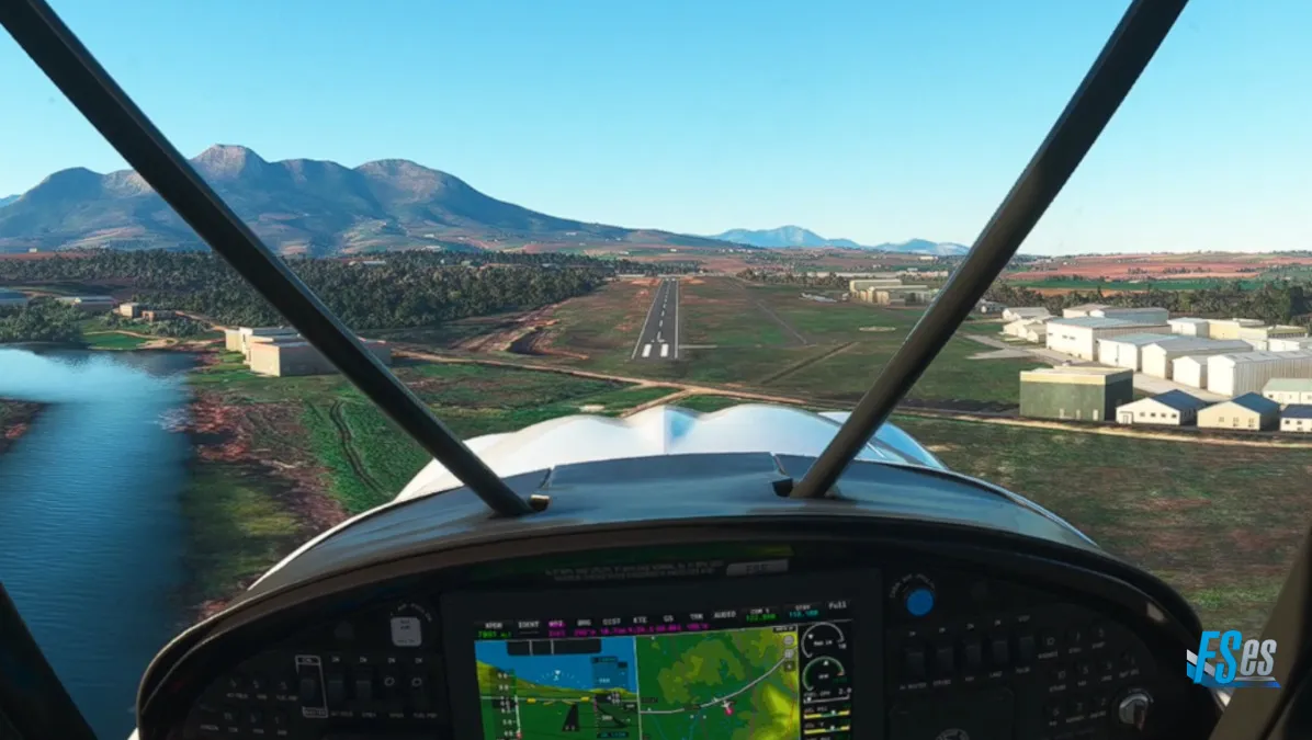 A la altura de Macassar tomamos rumbo norte para retornar la ruta planificada. En primer lugar, hicimos una toma y despegue en Stellenbosch (FASH), ingresando a viento en cola derecha para la pista 19, y luego saliendo por circuito izquierda para pasar las montañas que nos llevaría a la ruta.