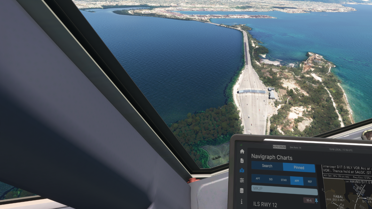 Se realizó la aproximación ELSER5 transición KEMBO, aproximación ILS, para aterrizar en la pista 12 del aeropuerto MKJP Norman Manley International Airport, Saint Andrew, Jamaica